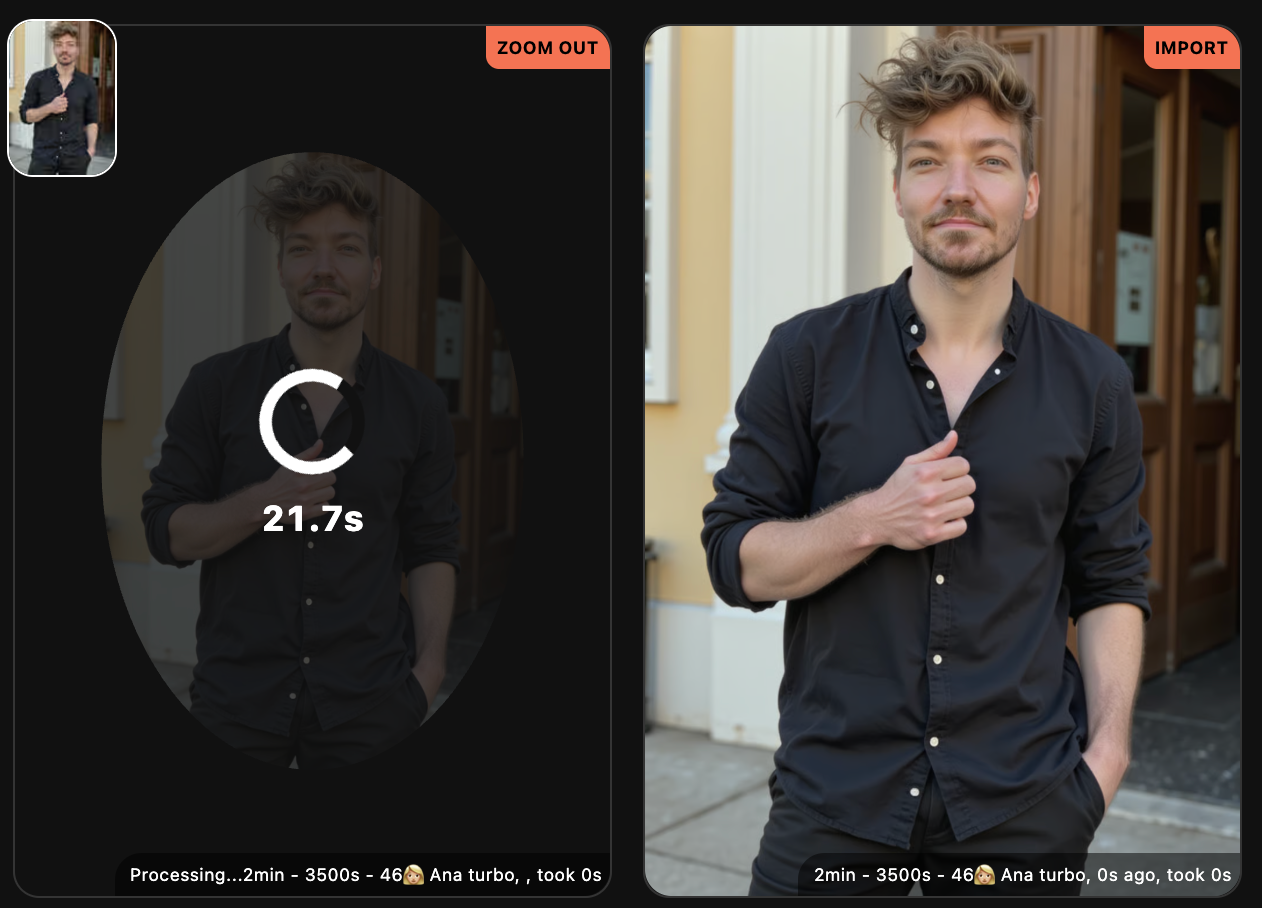 Simply write your desired scene, press 📸 Take photo and watch as the model generates a highly realistic photo that aligns with your vision in just ~20 seconds.