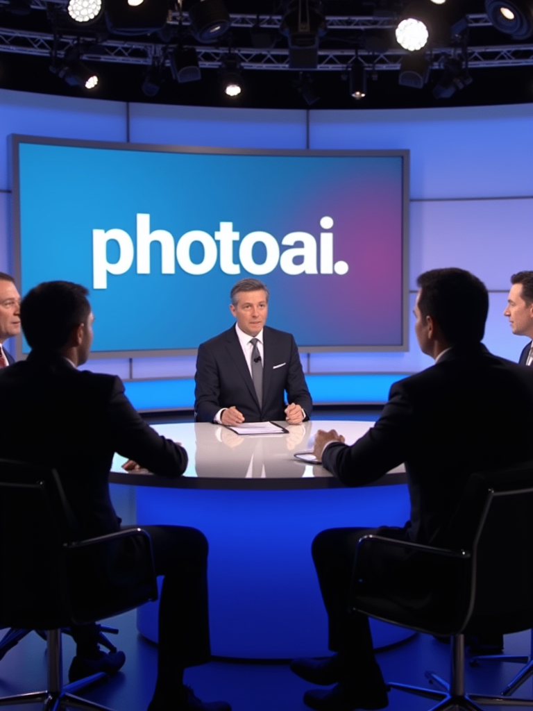 Related photosa TV news channel panel discussion setup. three experts—one media ethics professor, a hollywood filmmaker, and a tech industry representative—are in a heated debate over the implications of ai-generated videos. the chyron reads: 'PhotoAI.com: innovation or threat?' the host asks, 'are ai-generated videos misleading the public?' the filmmaker warns, 'this technology could replace human actors entirely!' the tech industry rep defends ai, saying it 'enhances creativity, not replaces it.' the professor warns about deepfakes and ai propaganda.a TV news channel panel discussion setup. three experts—one media ethics professor, a hollywood filmmaker, and a tech industry representative—are in a heated debate over the implications of ai-generated videos. the chyron reads: 'PhotoAI.com: innovation or threat?' the host asks, 'are ai-generated videos misleading the public?' the filmmaker warns, 'this technology could replace human actors entirely!' the tech industry rep defends ai, saying it 'enhances creativity, not replaces it.' the professor warns about deepfakes and ai propaganda.a TV news channel panel discussion setup. three experts—one media ethics professor, a hollywood filmmaker, and a tech industry representative—are in a heated debate over the implications of ai-generated videos. the chyron reads: 'PhotoAI.com: innovation or threat?' the host asks, 'are ai-generated videos misleading the public?' the filmmaker warns, 'this technology could replace human actors entirely!' the tech industry rep defends ai, saying it 'enhances creativity, not replaces it.' the professor warns about deepfakes and ai propaganda.full body photo side view of woman posing for photo. she is wearing holographic, glossy reflective, mini skirt that mirrors the surroundings. she is posed in a way that emphasizes their exaggerated, idealized body shapes, exaggerated buttocks.a man wearing  shirt and shorts in luxury villa living room, instagram photo, instagram,  fit bodya graduate man in their academic regalia, standing in front of their university building