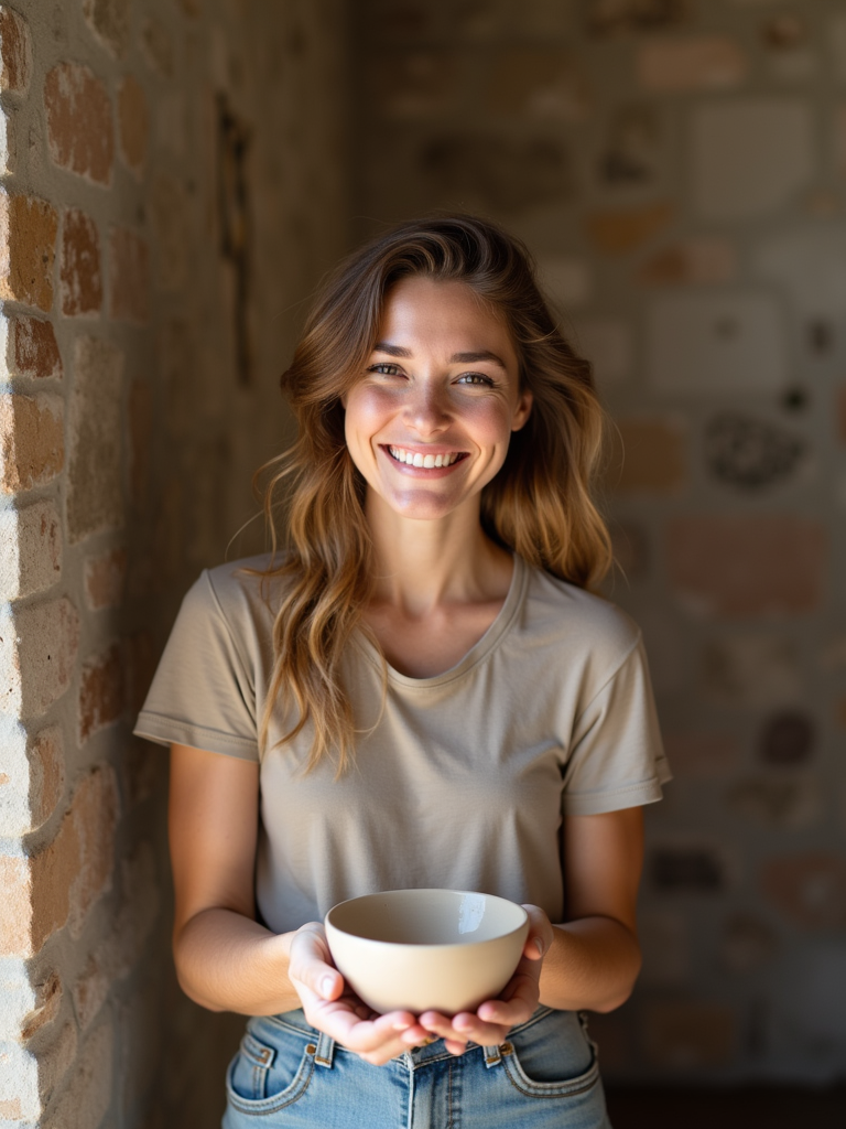 fun-loving feminine model trying out a new hobby—like rock climbing or pottery
