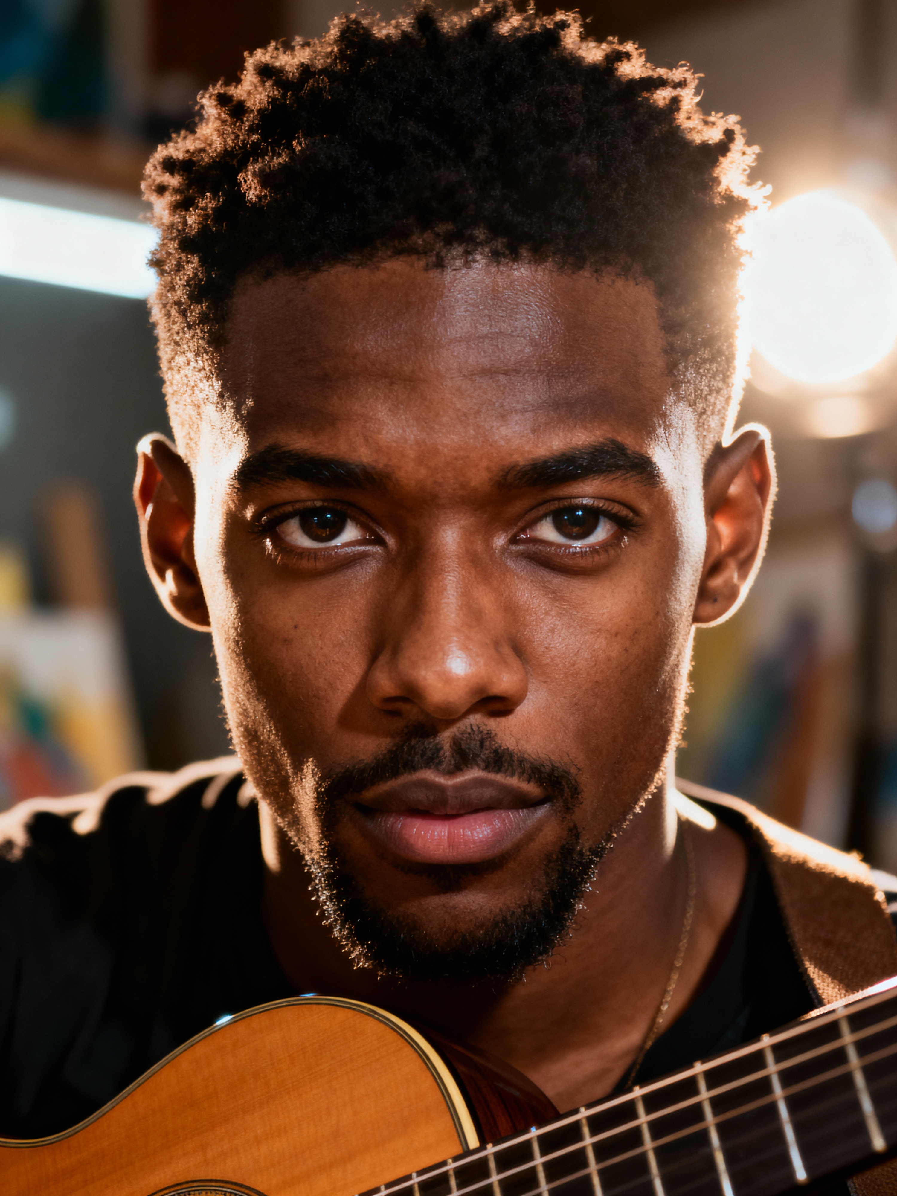creative masculine model practicing a personal passion—playing guitar, painting, or crafting