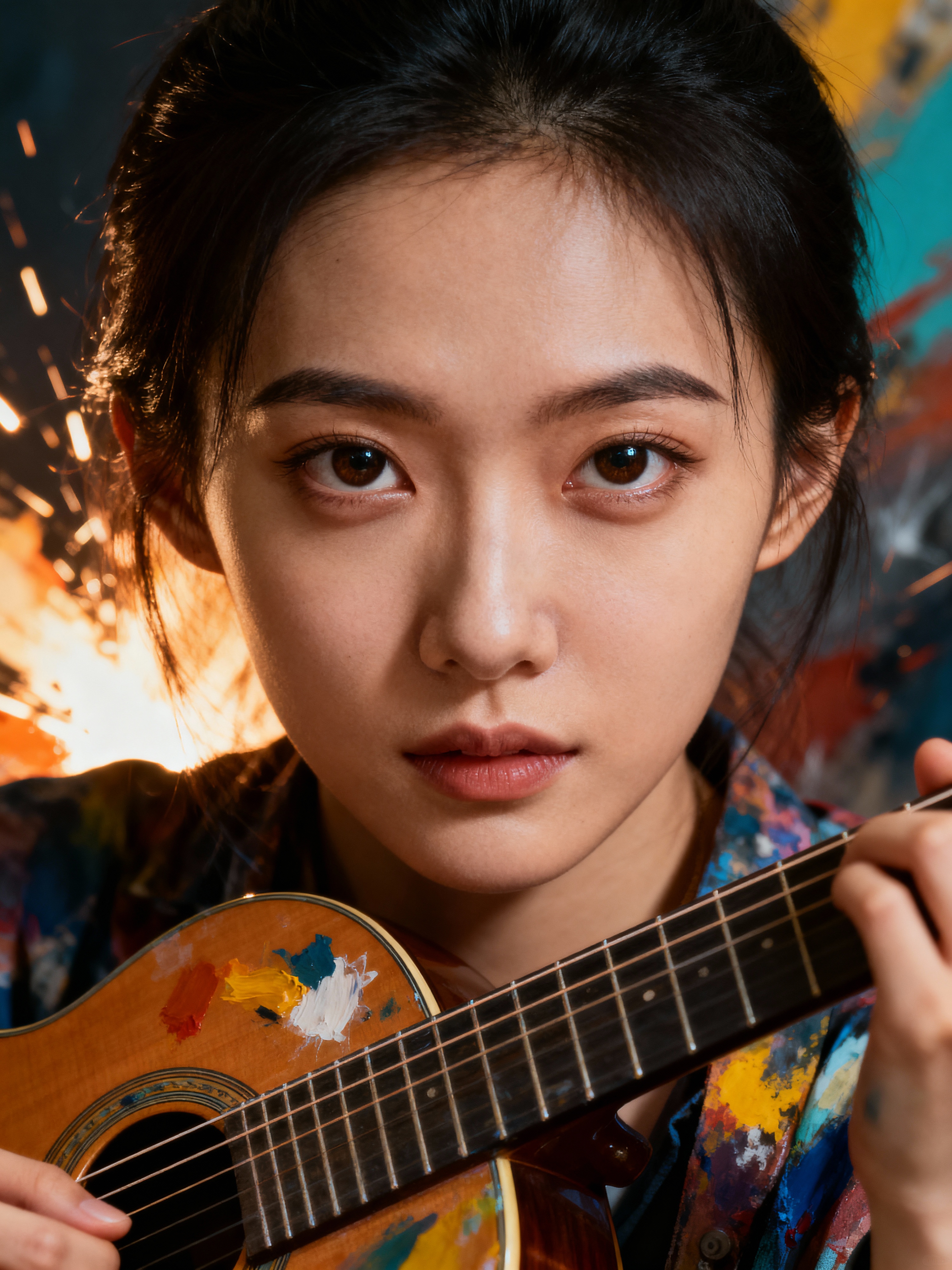 creative feminine model practicing a personal passion—playing guitar, painting, or crafting