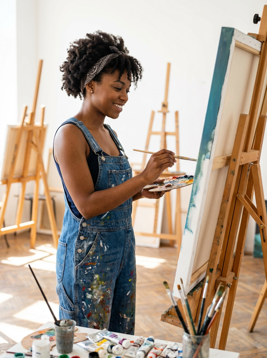 creative feminine model practicing a personal passion—playing guitar, painting, or crafting