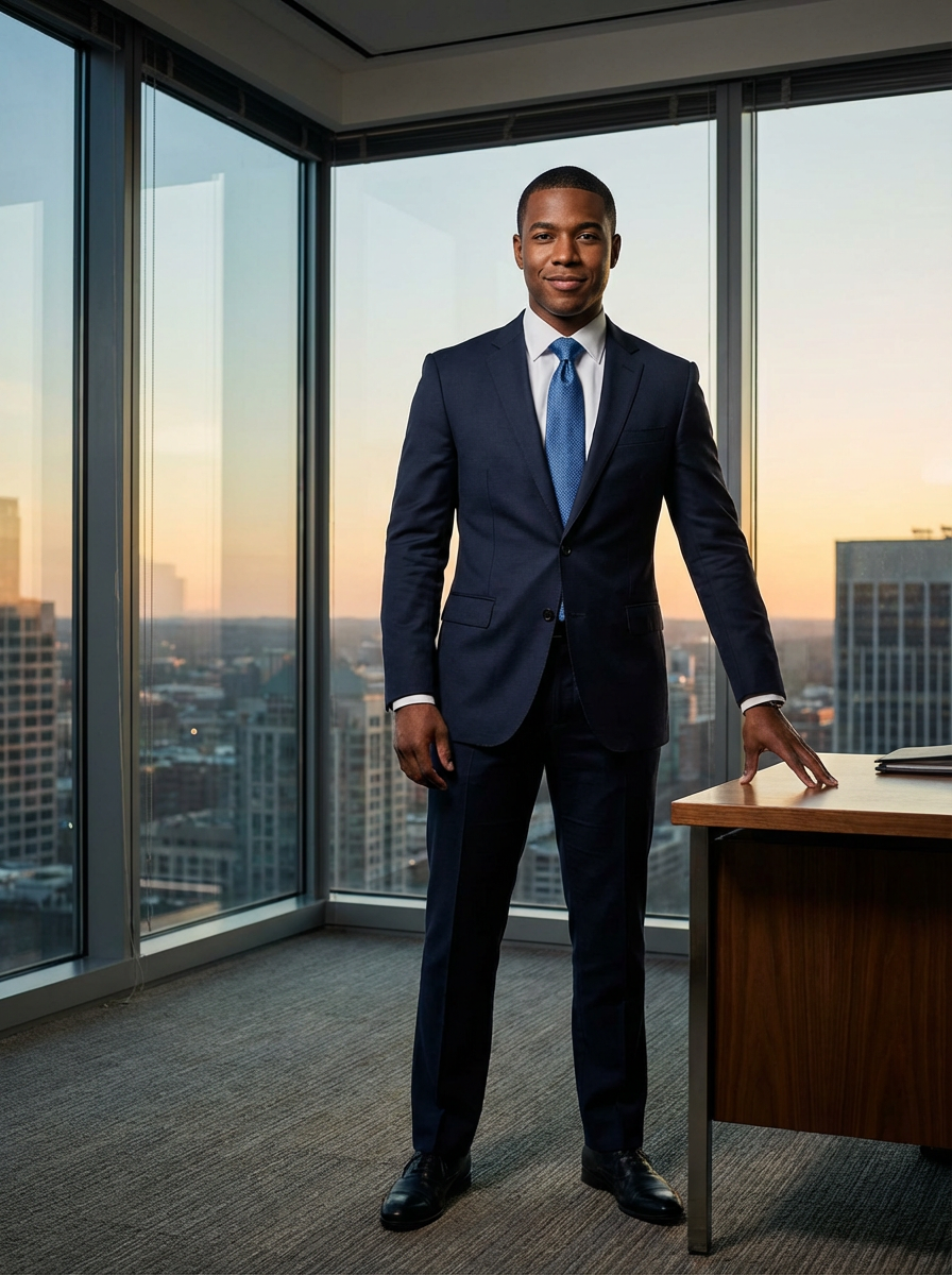 8k professional headshot of model as CEO, crisp details, premium executive business attire, commanding posture, confident expression, high-definition, corner office setting, sharp focus, dramatic lighting, power suit