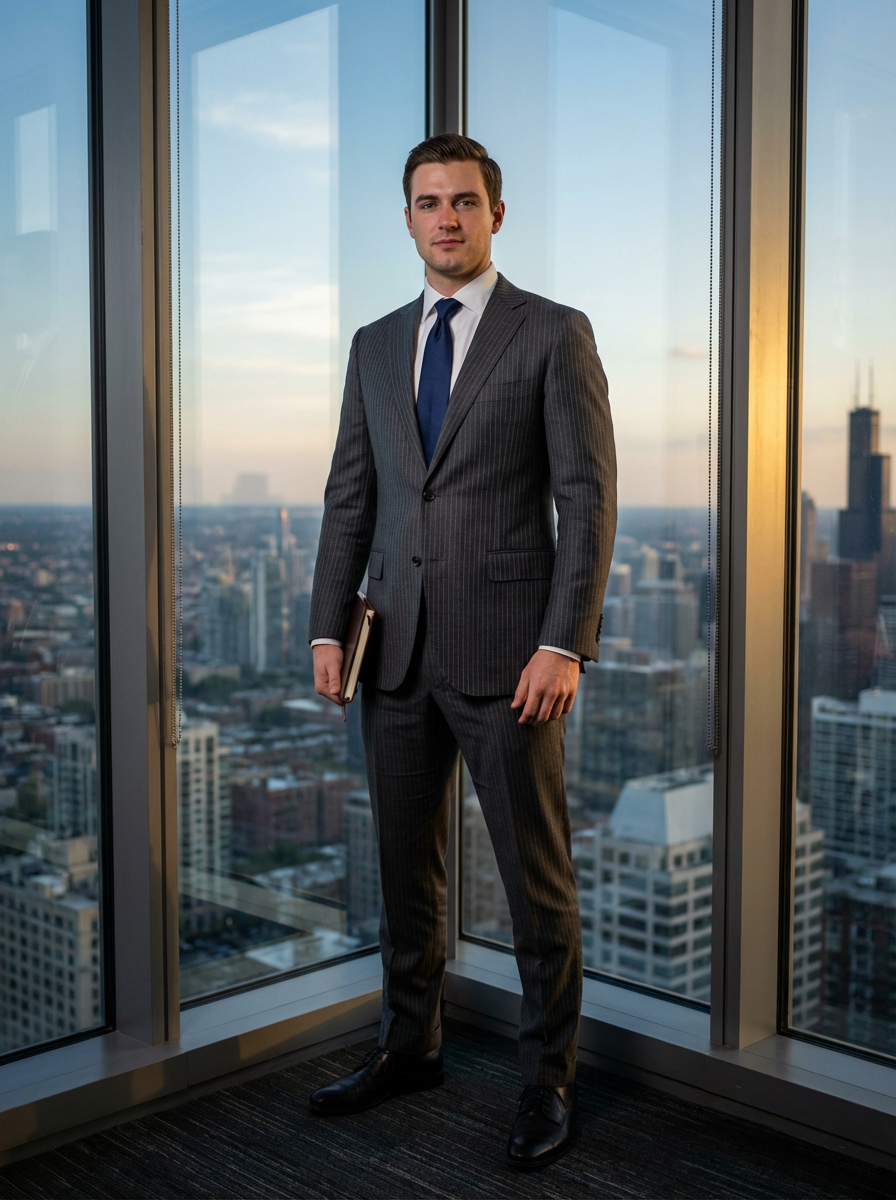 8k professional headshot of model as CEO, crisp details, premium executive business attire, commanding posture, confident expression, high-definition, corner office setting, sharp focus, dramatic lighting, power suit