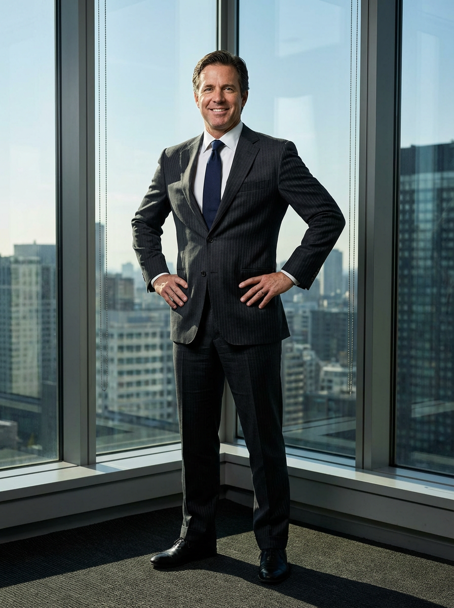 8k professional headshot of model as CEO, crisp details, premium executive business attire, commanding posture, confident expression, high-definition, corner office setting, sharp focus, dramatic lighting, power suit