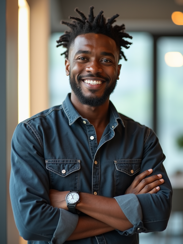 8k professional headshot of model, crisp details, bright modern office, casual tech wear, relaxed confident pose, approachable smile, high-definition, startup vibe, sharp focus, soft lighting, smart casual outfit, contemporary setting