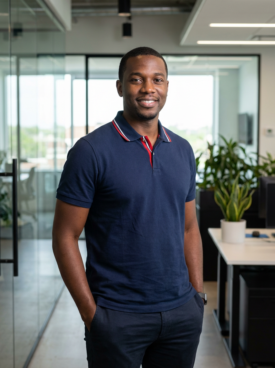 8k professional headshot of model, crisp details, bright modern office, casual tech wear, relaxed confident pose, approachable smile, high-definition, startup vibe, sharp focus, soft lighting, smart casual outfit, contemporary setting