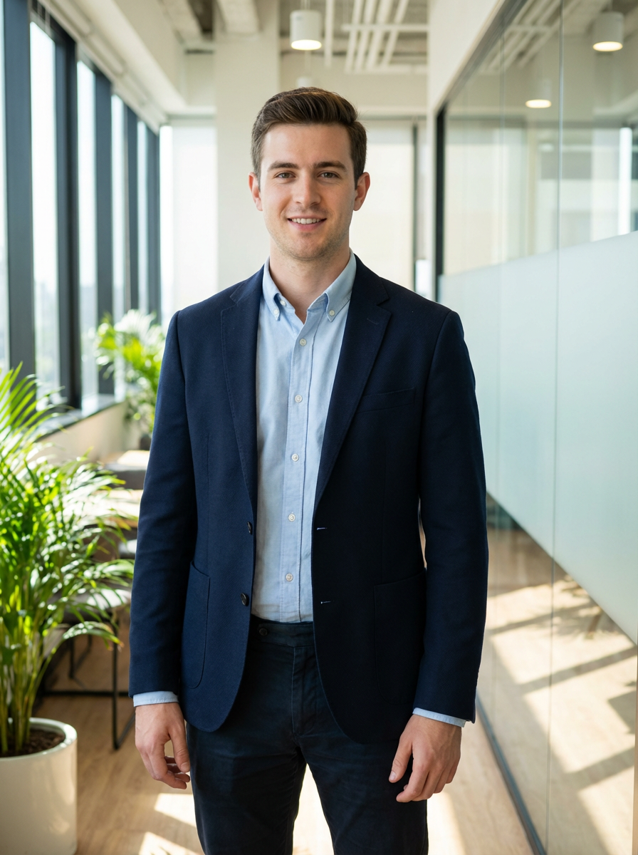 8k professional headshot of model, crisp details, casual smart attire, confident posture, friendly expression, high-definition, modern startup environment, sharp focus, natural lighting, business casual, open workspace background