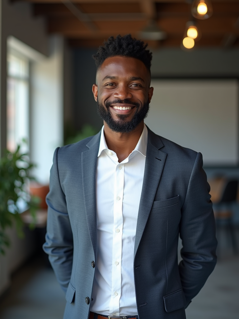 8k professional headshot of model, crisp details, studio backdrop, casual smart attire, confident posture, friendly expression, high-definition, modern startup environment, sharp focus, natural lighting, business casual, open workspace background