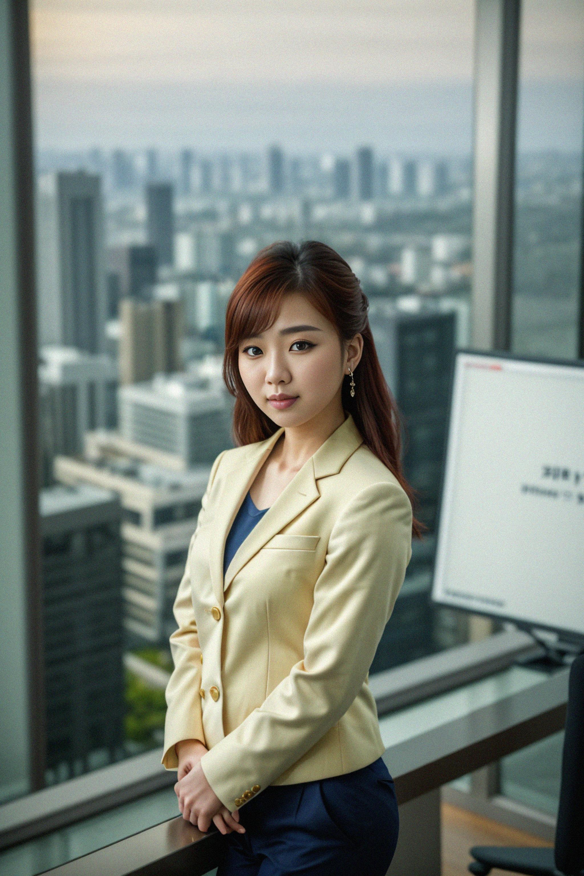 8k professional headshot of model, crisp details, studio backdrop, executive attire, confident posture, neutral expression, high-definition, corporate setting, sharp focus, ambient lighting, business professional, cityscape view
