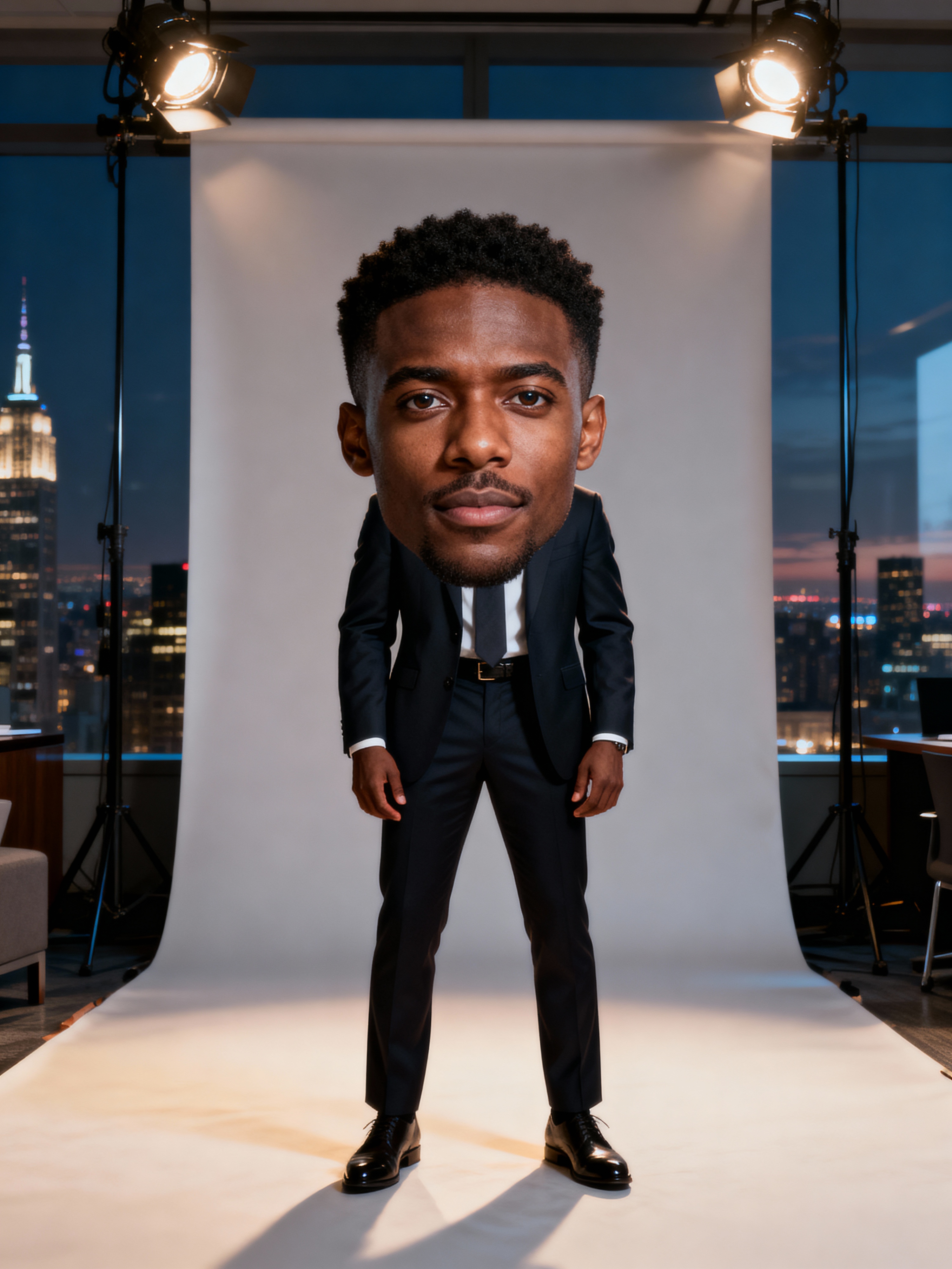 8k professional headshot of model, crisp details, studio backdrop, executive attire, confident posture, neutral expression, high-definition, corporate setting, sharp focus, ambient lighting, business professional, cityscape view