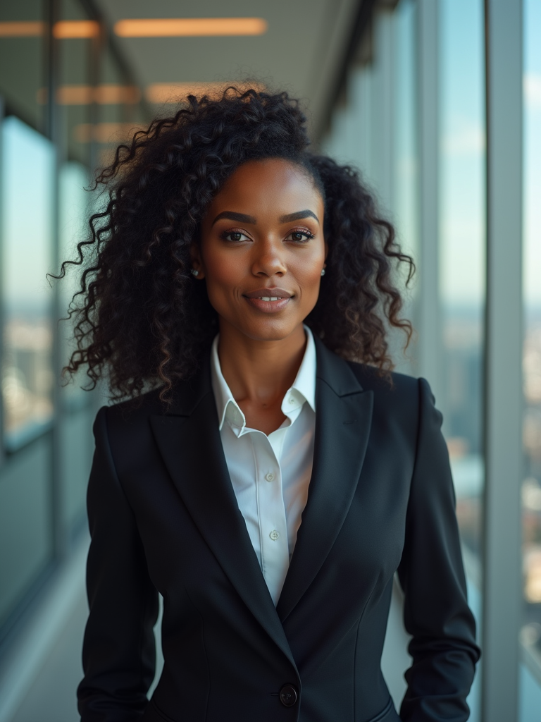 8k professional headshot of model as executive leader, crisp details, luxury office backdrop, premium tailored attire, authoritative pose, decisive expression, high-definition, boardroom environment, sharp focus, professional lighting, executive presence, skyscraper view