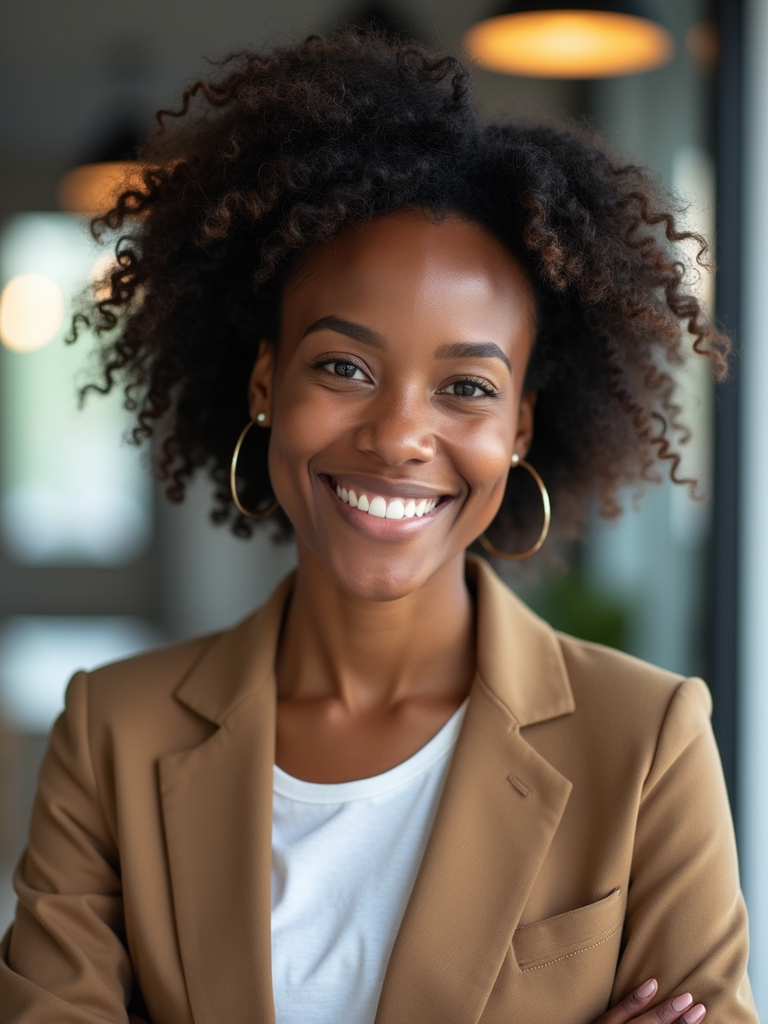 8k professional headshot of model, crisp details, bright modern office, casual tech wear, relaxed confident pose, approachable smile, high-definition, startup vibe, sharp focus, soft lighting, smart casual outfit, contemporary setting