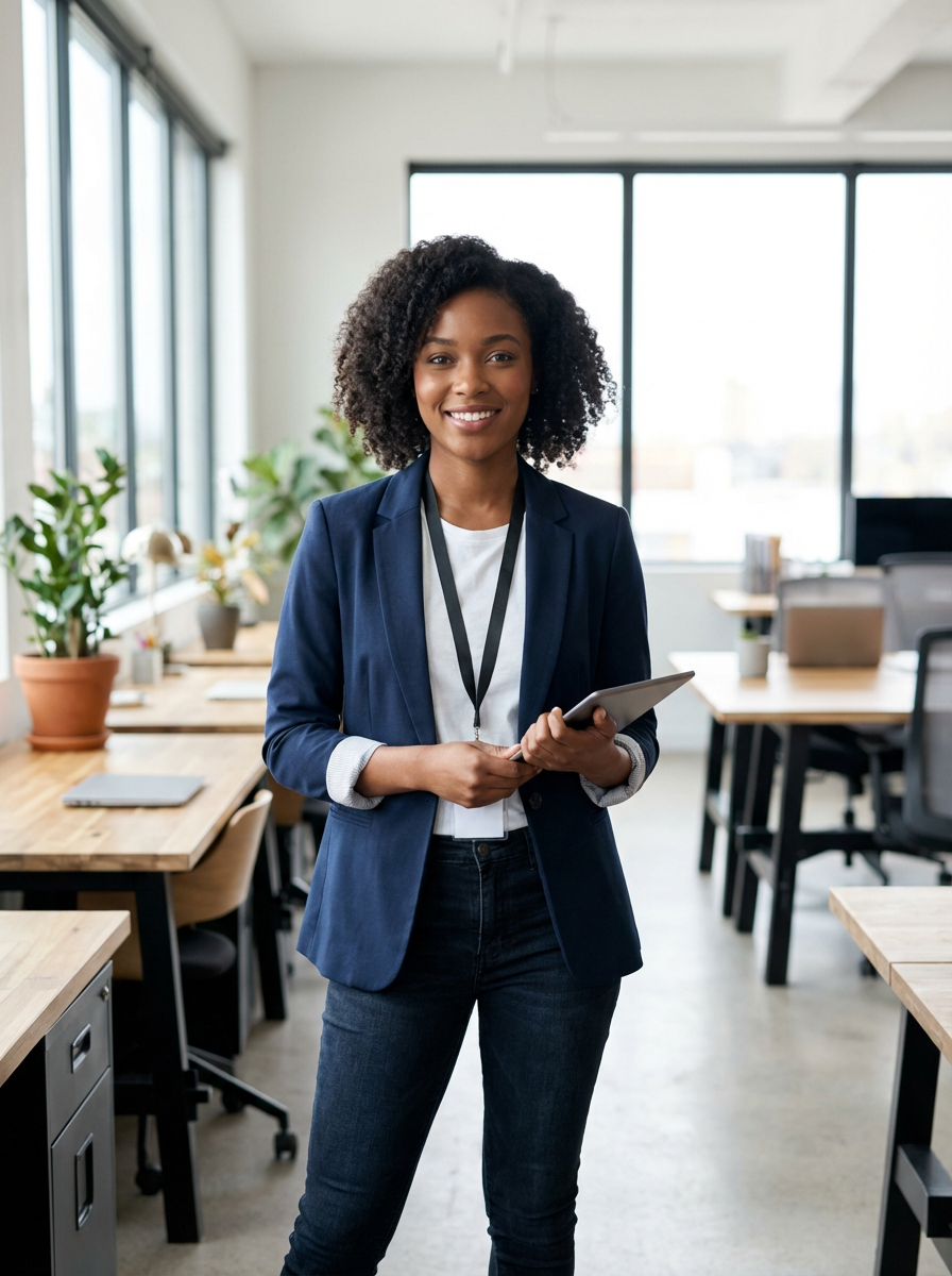 8k professional headshot of model, crisp details, bright modern office, casual tech wear, relaxed confident pose, approachable smile, high-definition, startup vibe, sharp focus, soft lighting, smart casual outfit, contemporary setting