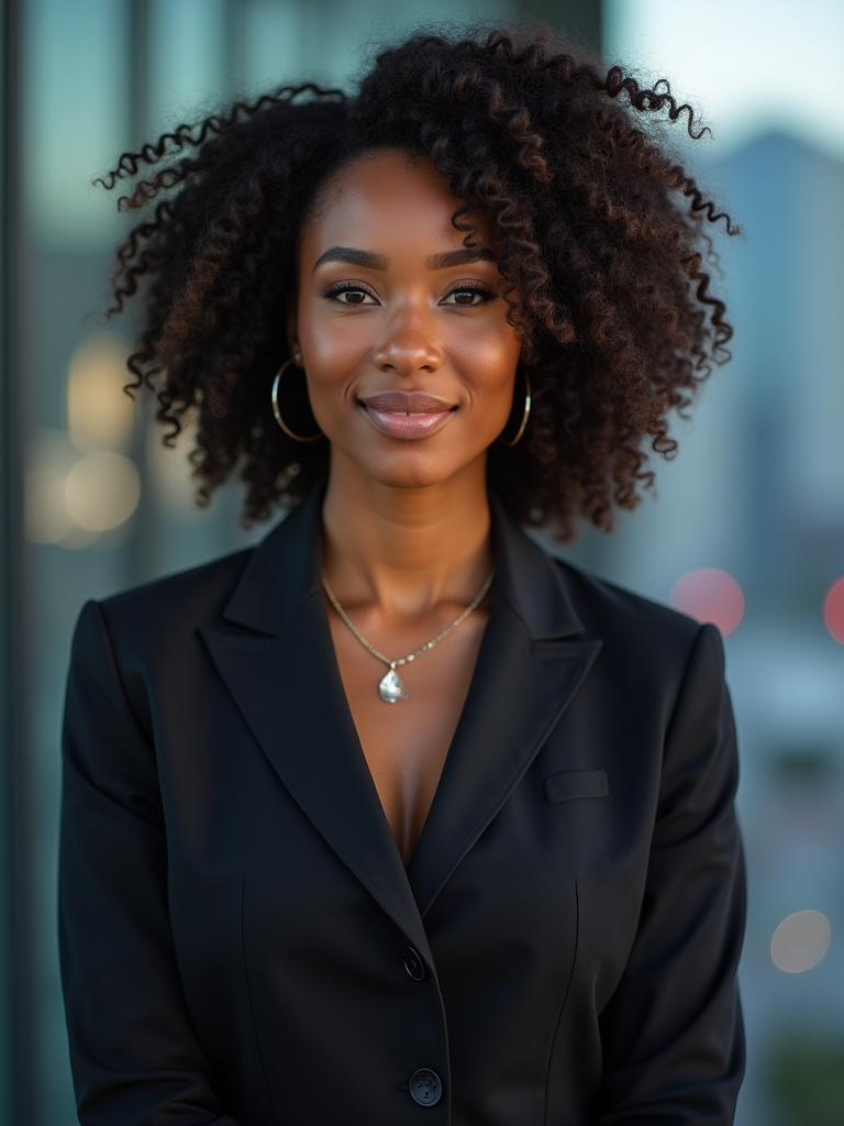 8k professional headshot of model, crisp details, studio backdrop, executive attire, confident posture, neutral expression, high-definition, corporate setting, sharp focus, ambient lighting, business professional, cityscape view