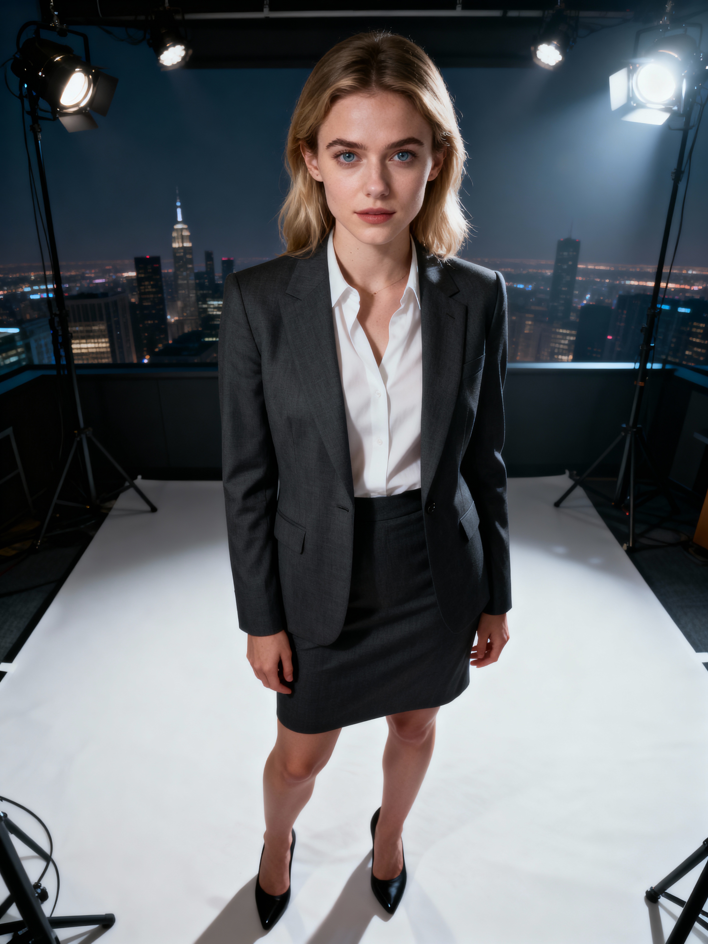 8k professional headshot of model, crisp details, studio backdrop, executive attire, confident posture, neutral expression, high-definition, corporate setting, sharp focus, ambient lighting, business professional, cityscape view