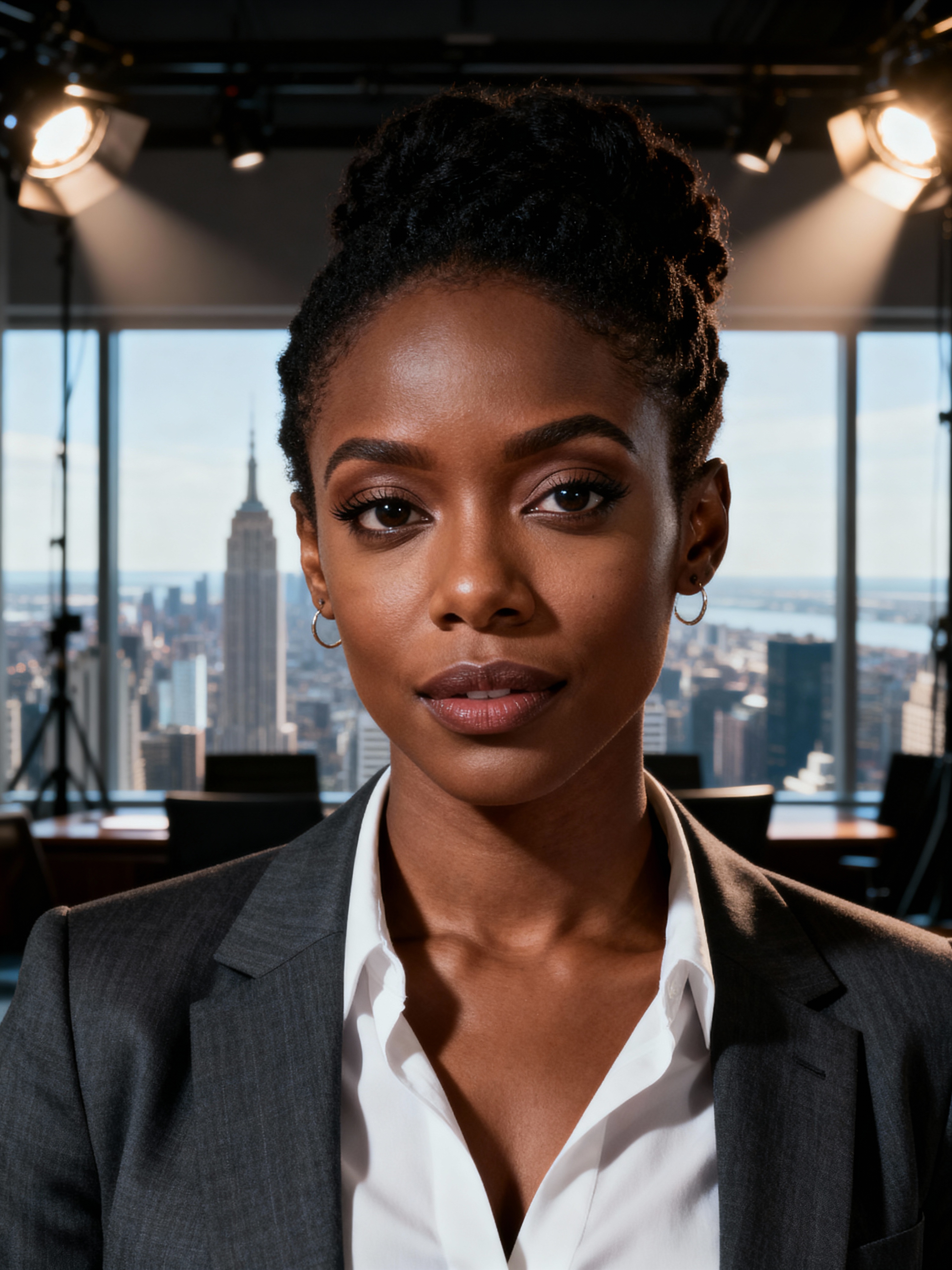 8k professional headshot of model, crisp details, studio backdrop, executive attire, confident posture, neutral expression, high-definition, corporate setting, sharp focus, ambient lighting, business professional, cityscape view