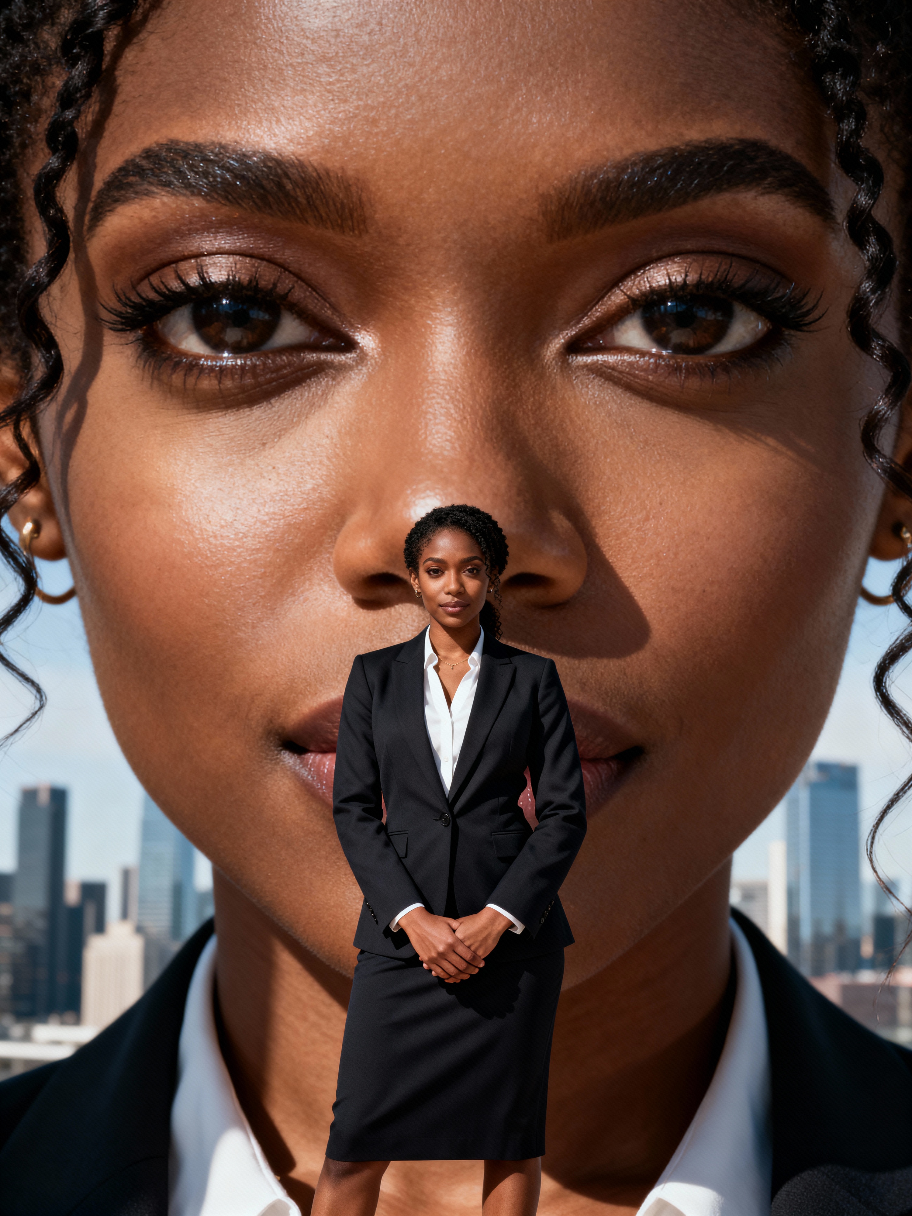 8k professional headshot of model, crisp details, studio backdrop, executive attire, confident posture, neutral expression, high-definition, corporate setting, sharp focus, ambient lighting, business professional, cityscape view
