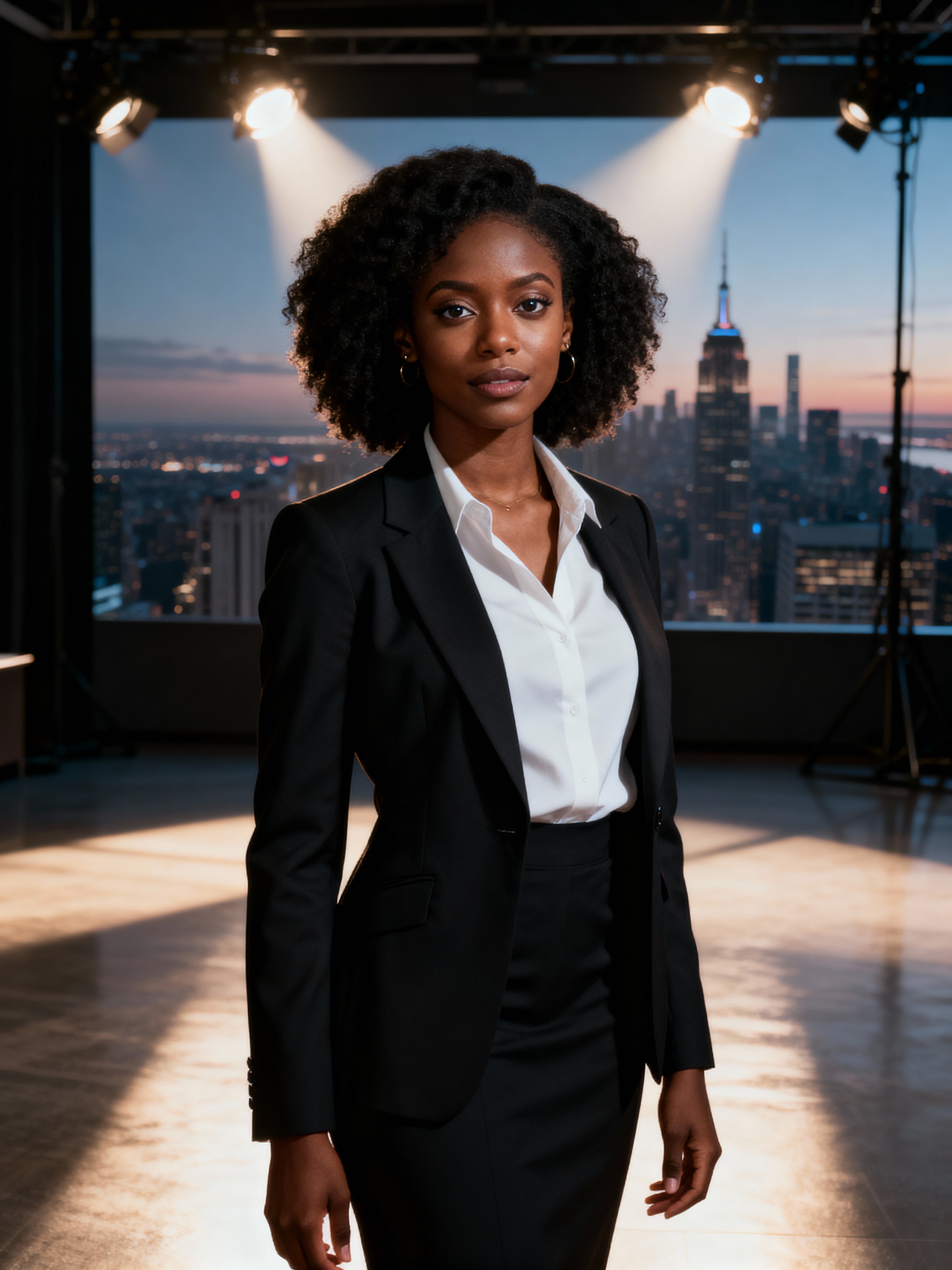 8k professional headshot of model, crisp details, studio backdrop, executive attire, confident posture, neutral expression, high-definition, corporate setting, sharp focus, ambient lighting, business professional, cityscape view