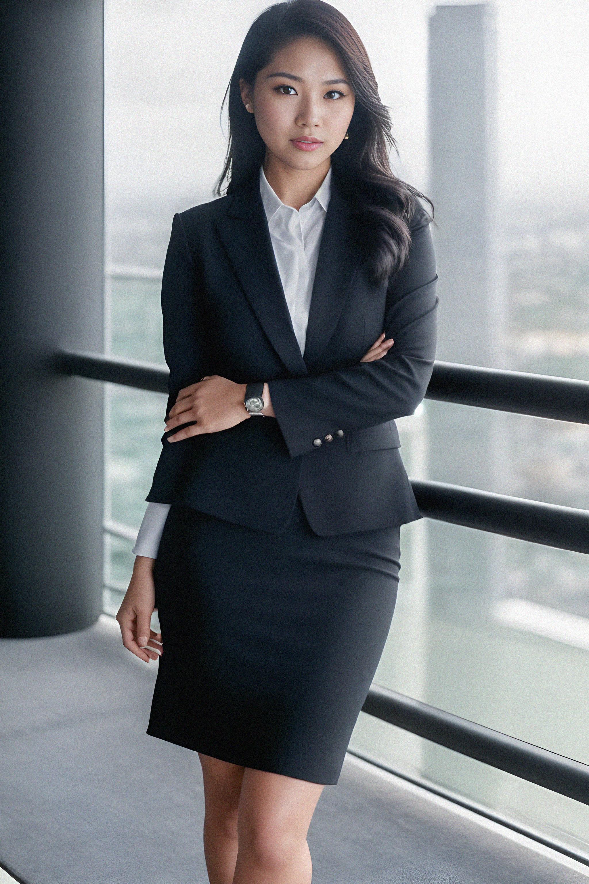 8k professional headshot of model, crisp details, studio backdrop, executive attire, confident posture, neutral expression, high-definition, corporate setting, sharp focus, ambient lighting, business professional, cityscape view
