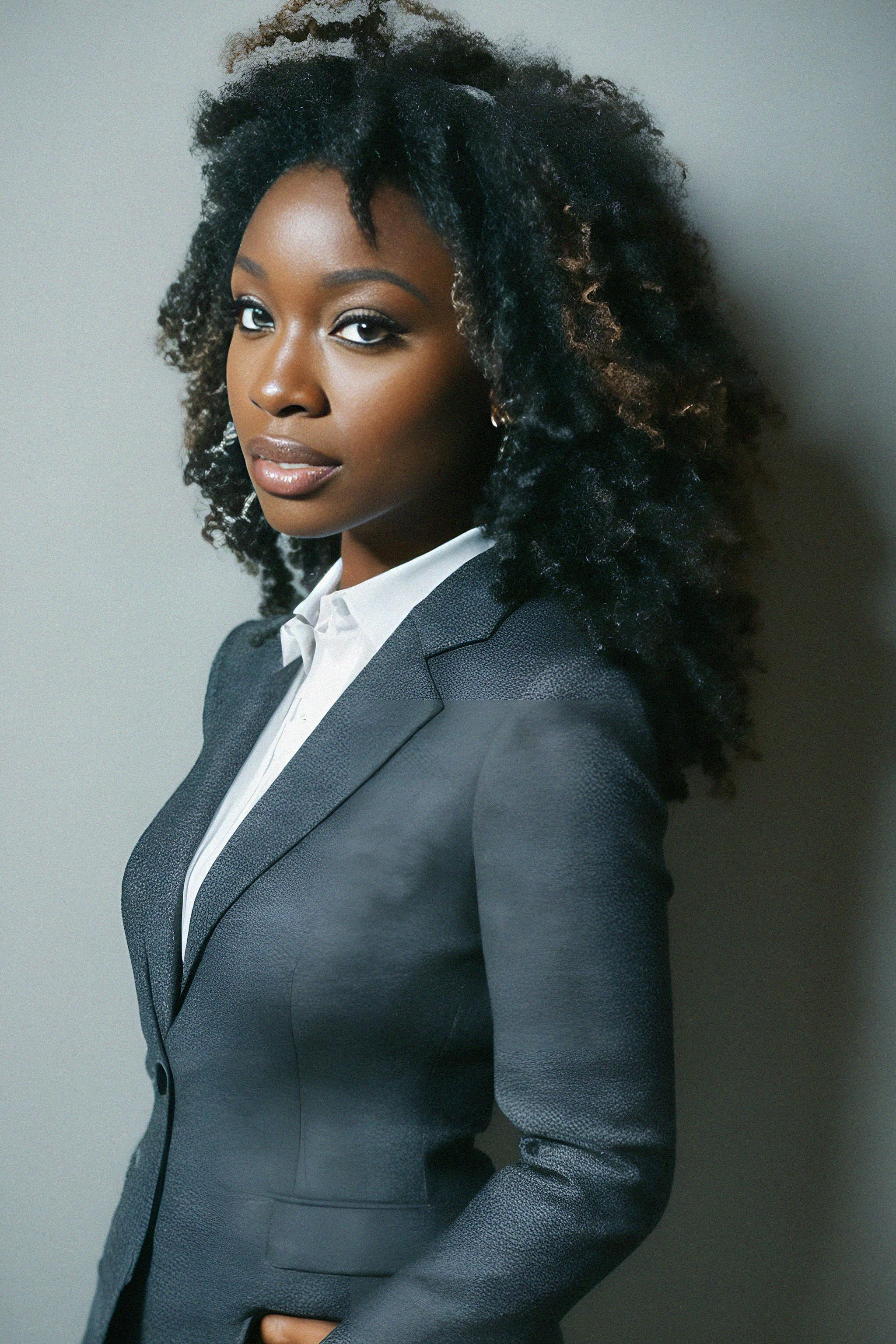 8k professional headshot of model, crisp details, studio backdrop, executive attire, confident posture, neutral expression, high-definition, corporate setting, sharp focus, ambient lighting, business professional, cityscape view
