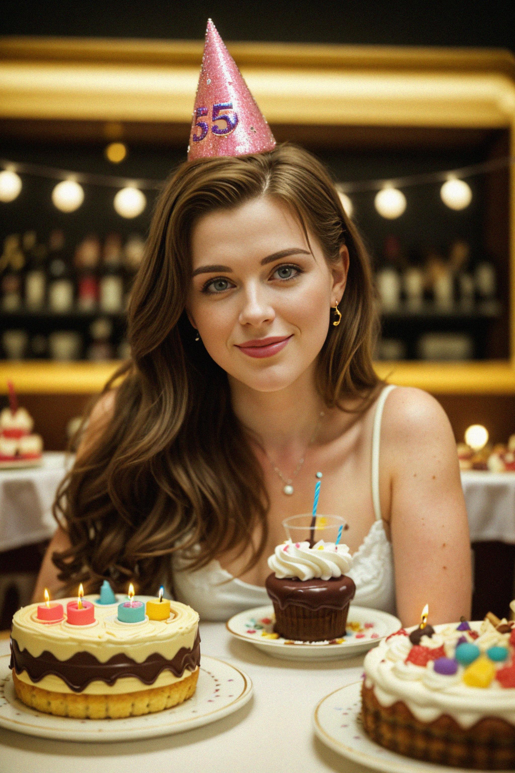 a birthday celebrant surrounded by a table filled with delicious treats and desserts, showcasing the indulgence and enjoyment of birthday delights