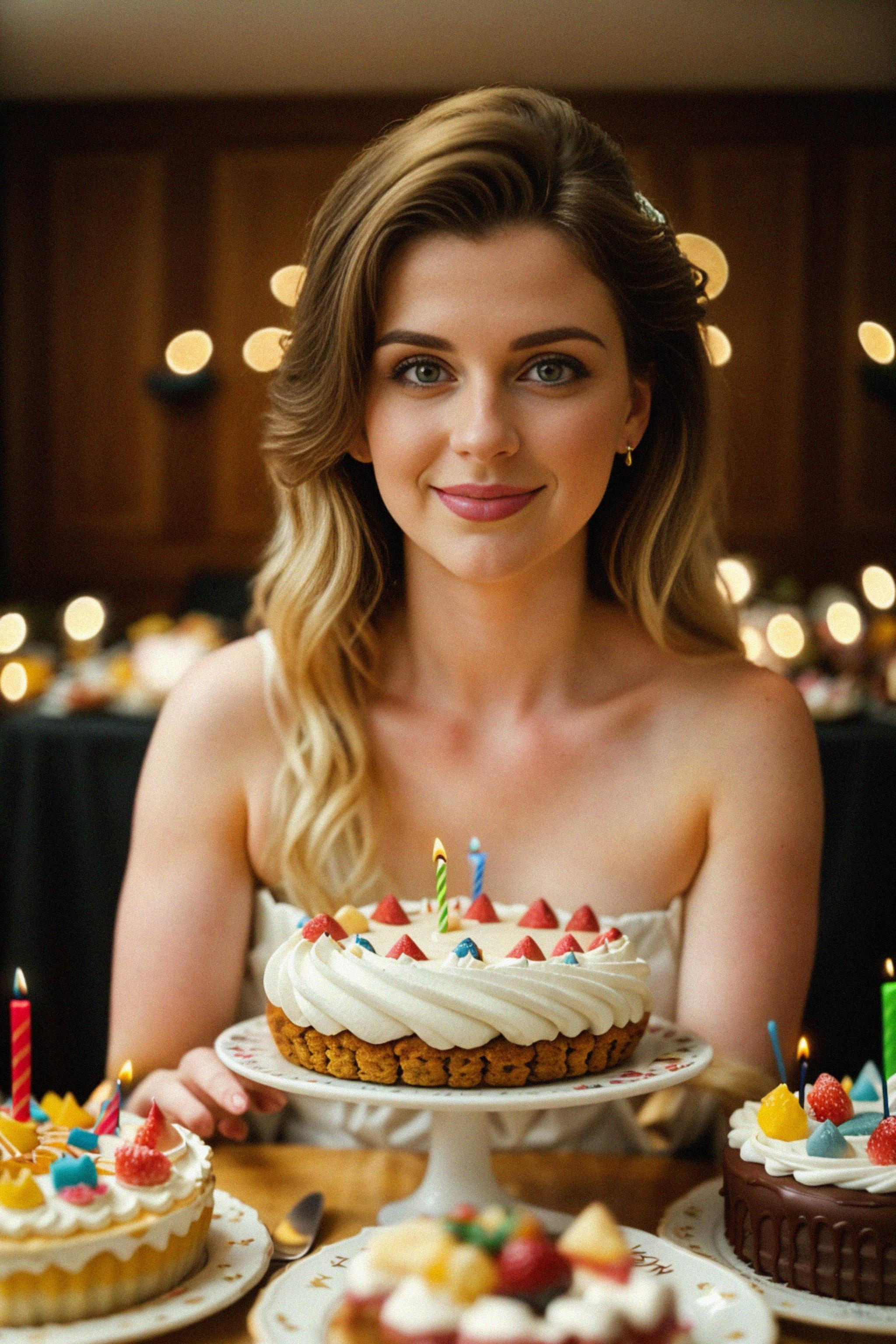 a birthday celebrant surrounded by a table filled with delicious treats and desserts, showcasing the indulgence and enjoyment of birthday delights