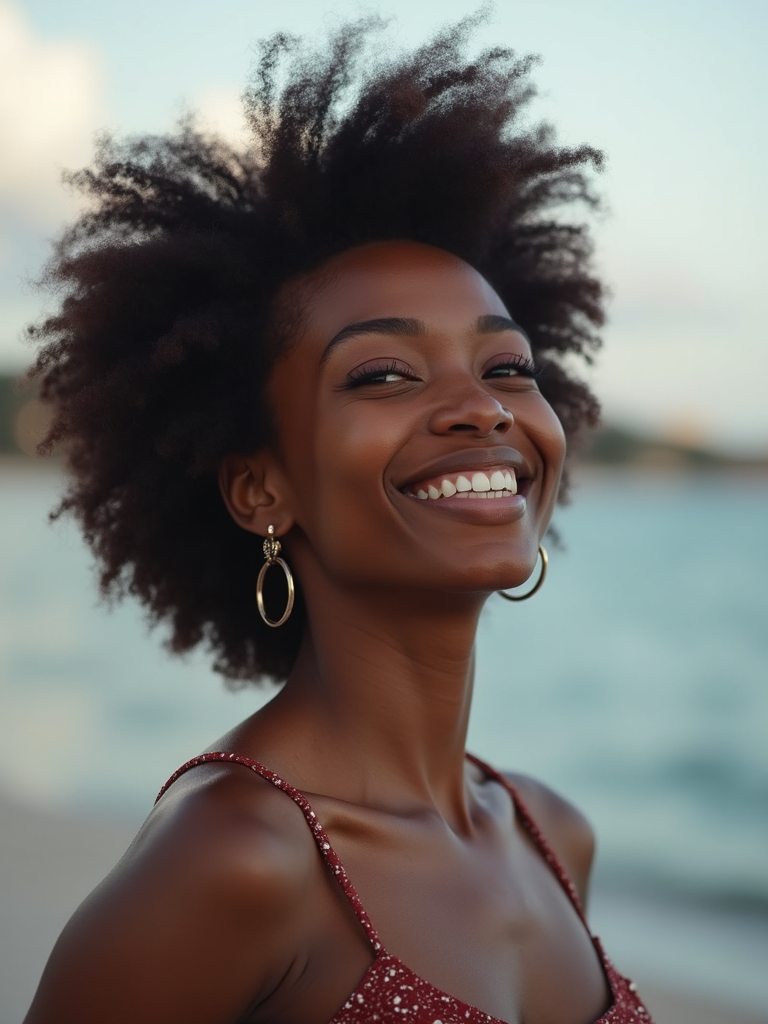a captivating feminine model enjoying a peaceful moment by the waterfront