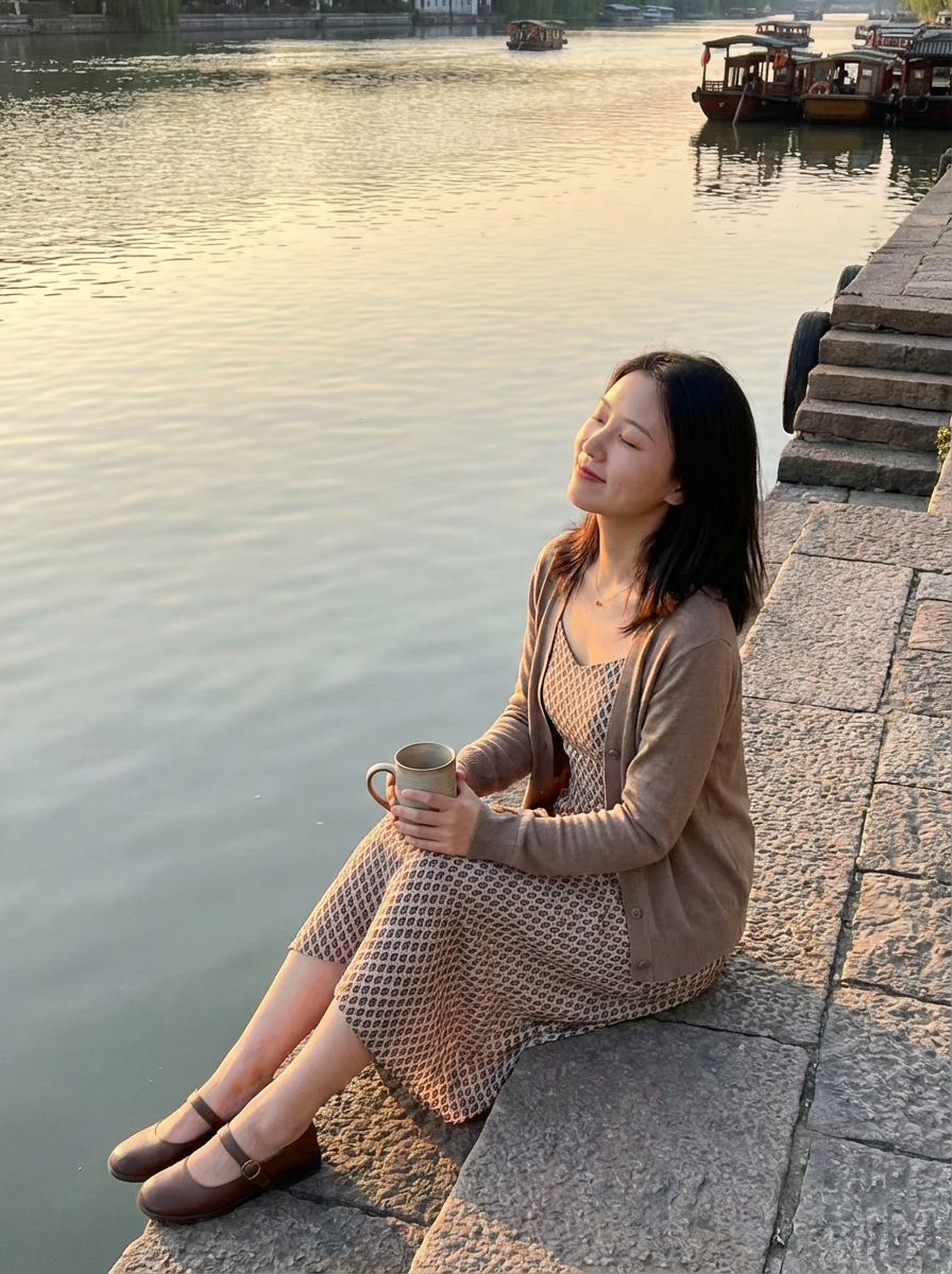 a captivating feminine model enjoying a peaceful moment by the waterfront
