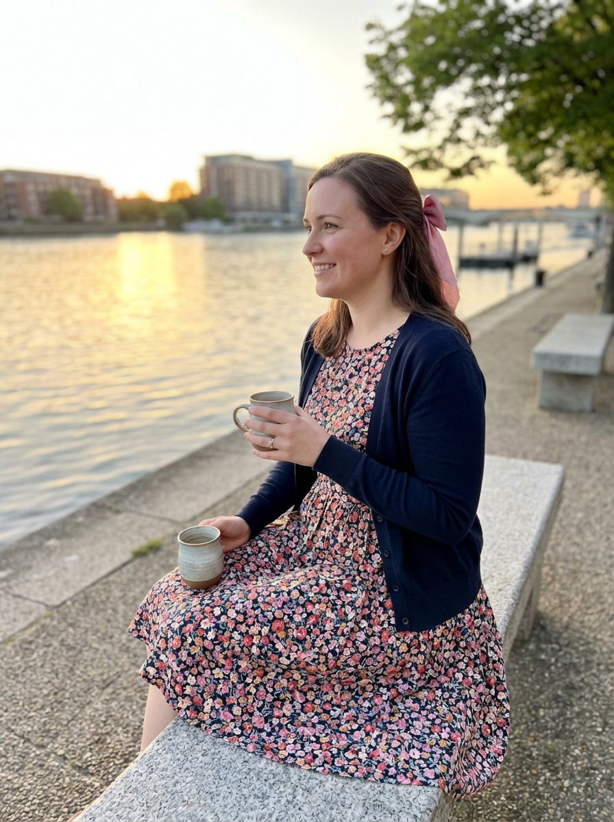 a captivating feminine model enjoying a peaceful moment by the waterfront