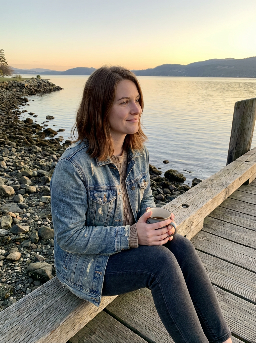 a captivating feminine model enjoying a peaceful moment by the waterfront