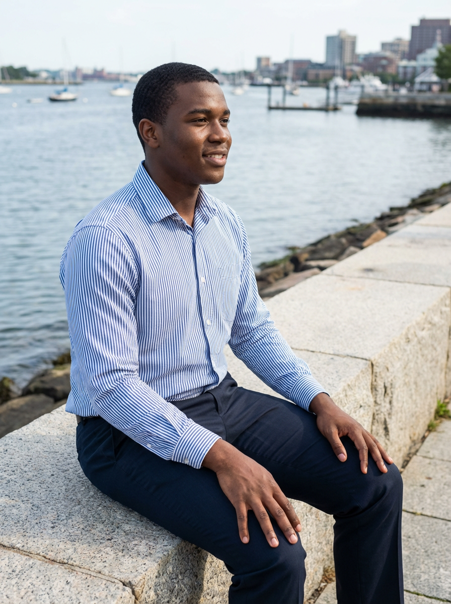 a captivating masculine model enjoying a peaceful moment by the waterfront