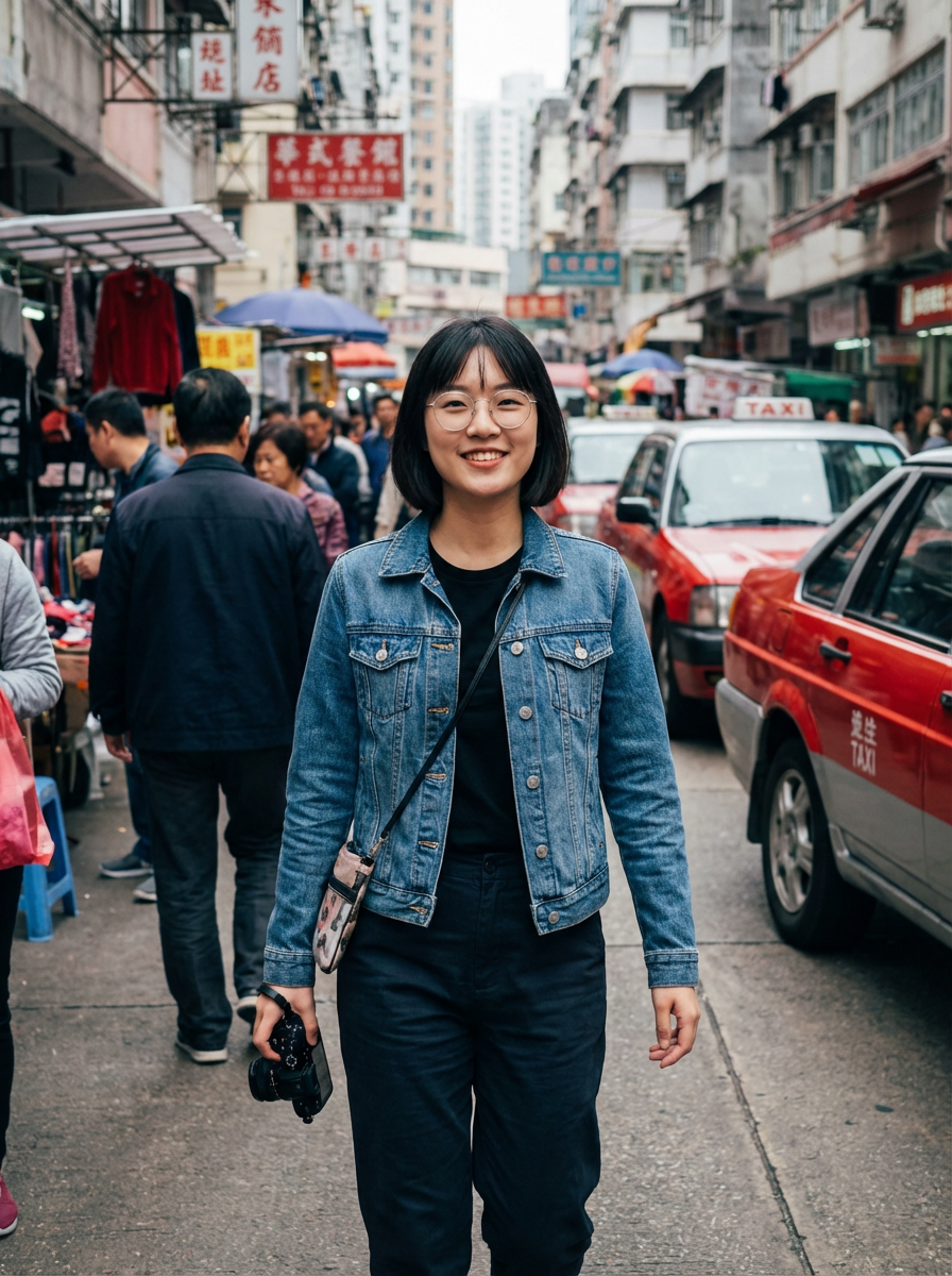 a confident feminine model exploring a bustling city street