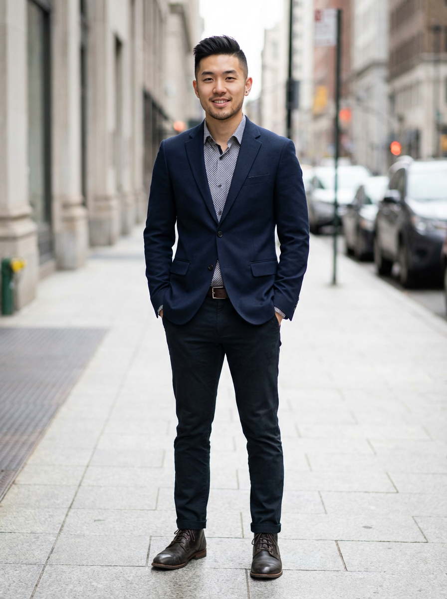 a confident masculine model dressed in stylish attire