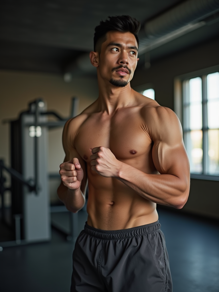 a confident masculine model engaging in a fitness routine