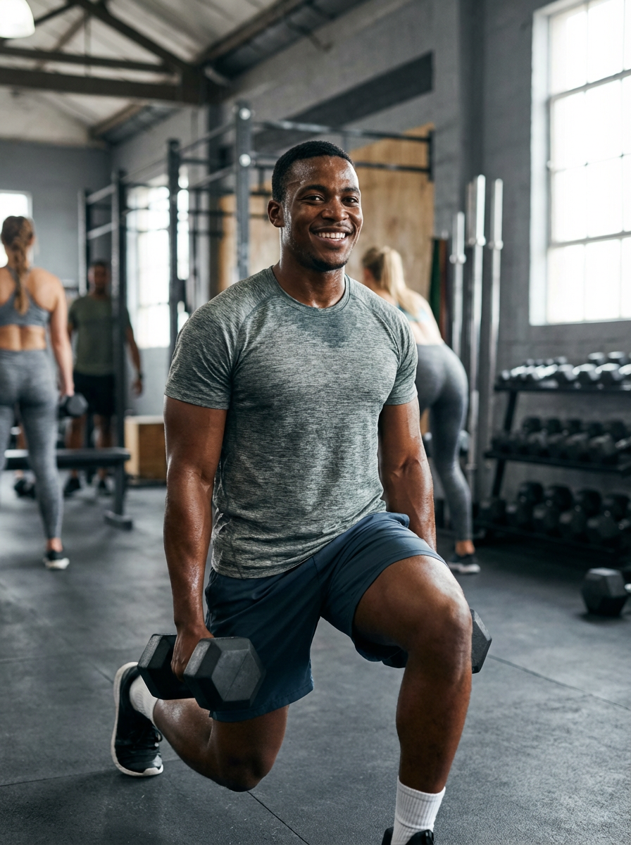a confident masculine model engaging in a fitness routine
