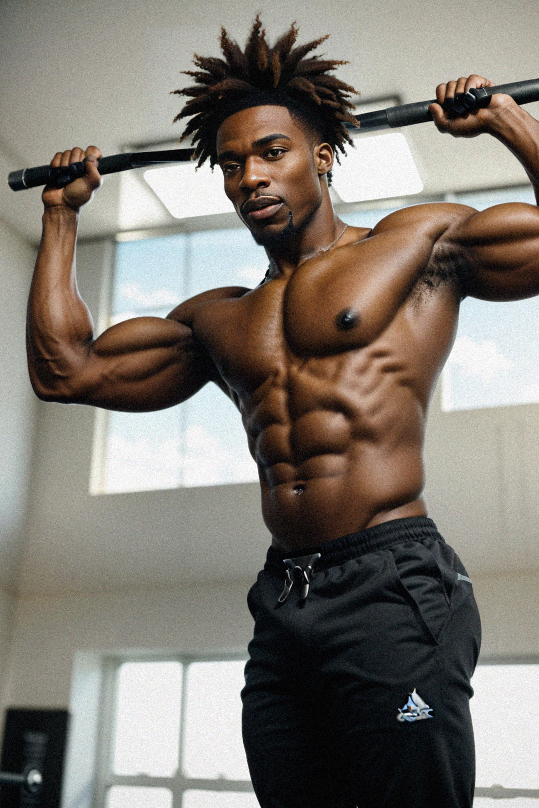 a fit male model as fitness influencer flexing their muscles in the gym, capturing the sculpted physique and hard work