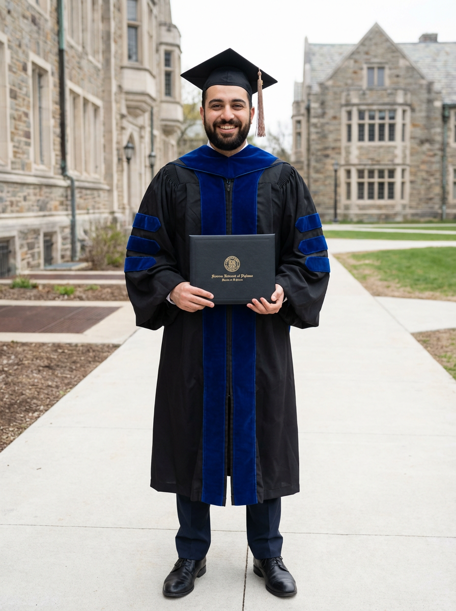 a graduate model in their academic regalia
