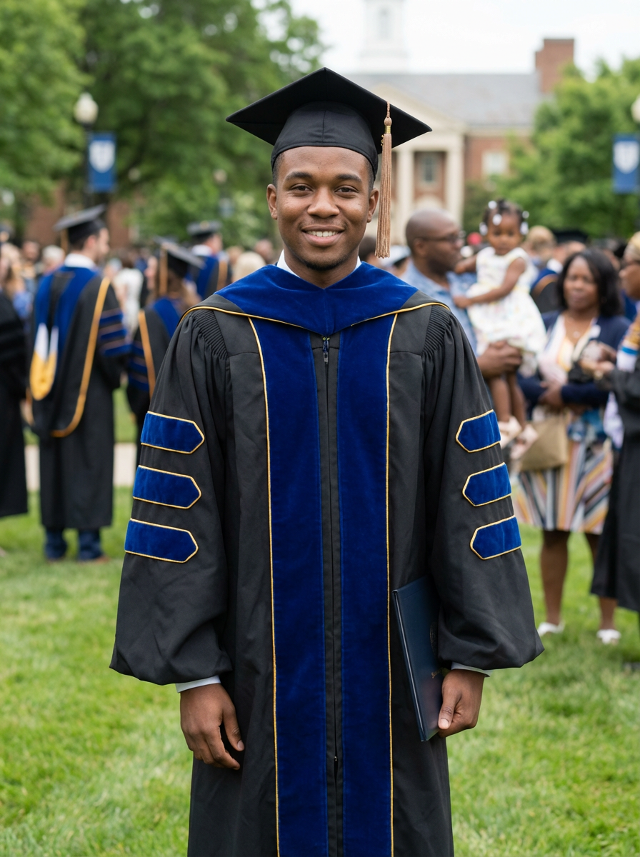 a graduate model wearing their academic regalia