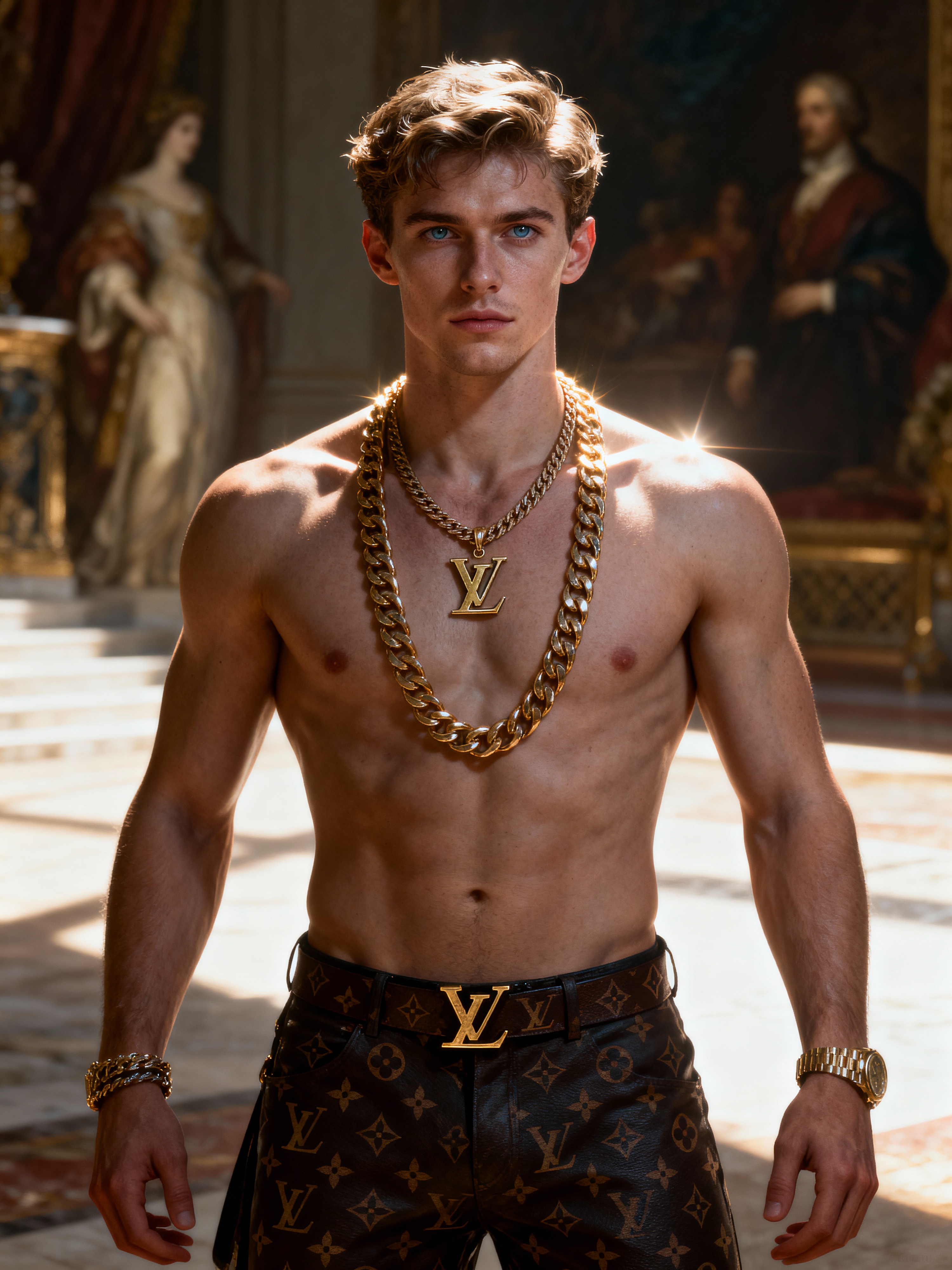 a male model as a beautiful fashion charming dreamlike model with lv jewelry, character art, art by artgerm lau and wlop and and ilya kuvshinov and john singer sargent, hyperdetailed, 8 k realistic, symmetrical, frostbite 3 engine, cryengine, dof, trending on artstation, digital art