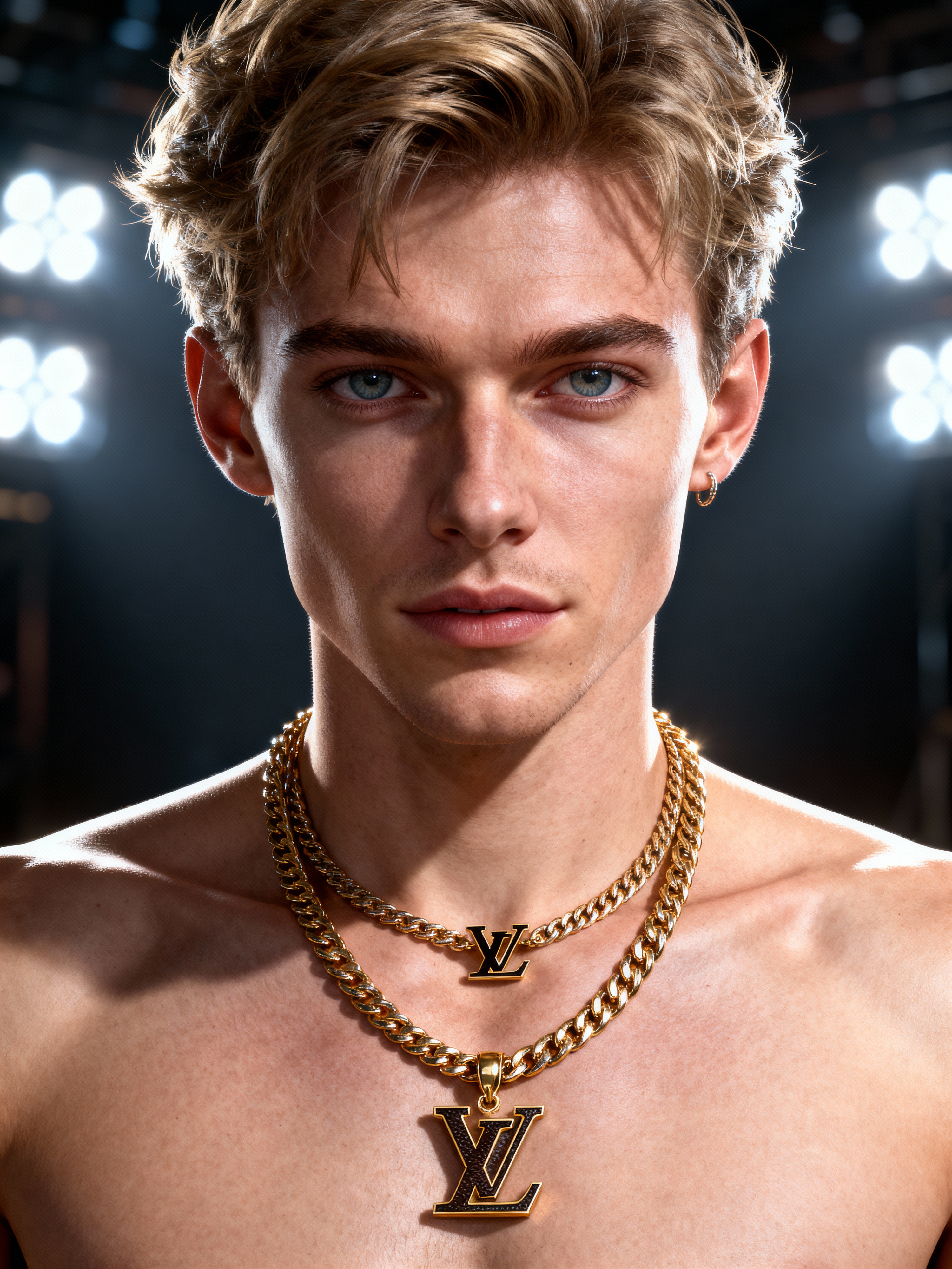 a male model as a beautiful fashion charming dreamlike model with lv jewelry, character art, art by artgerm lau and wlop and and ilya kuvshinov and john singer sargent, hyperdetailed, 8 k realistic, symmetrical, frostbite 3 engine, cryengine, dof, trending on artstation, digital art