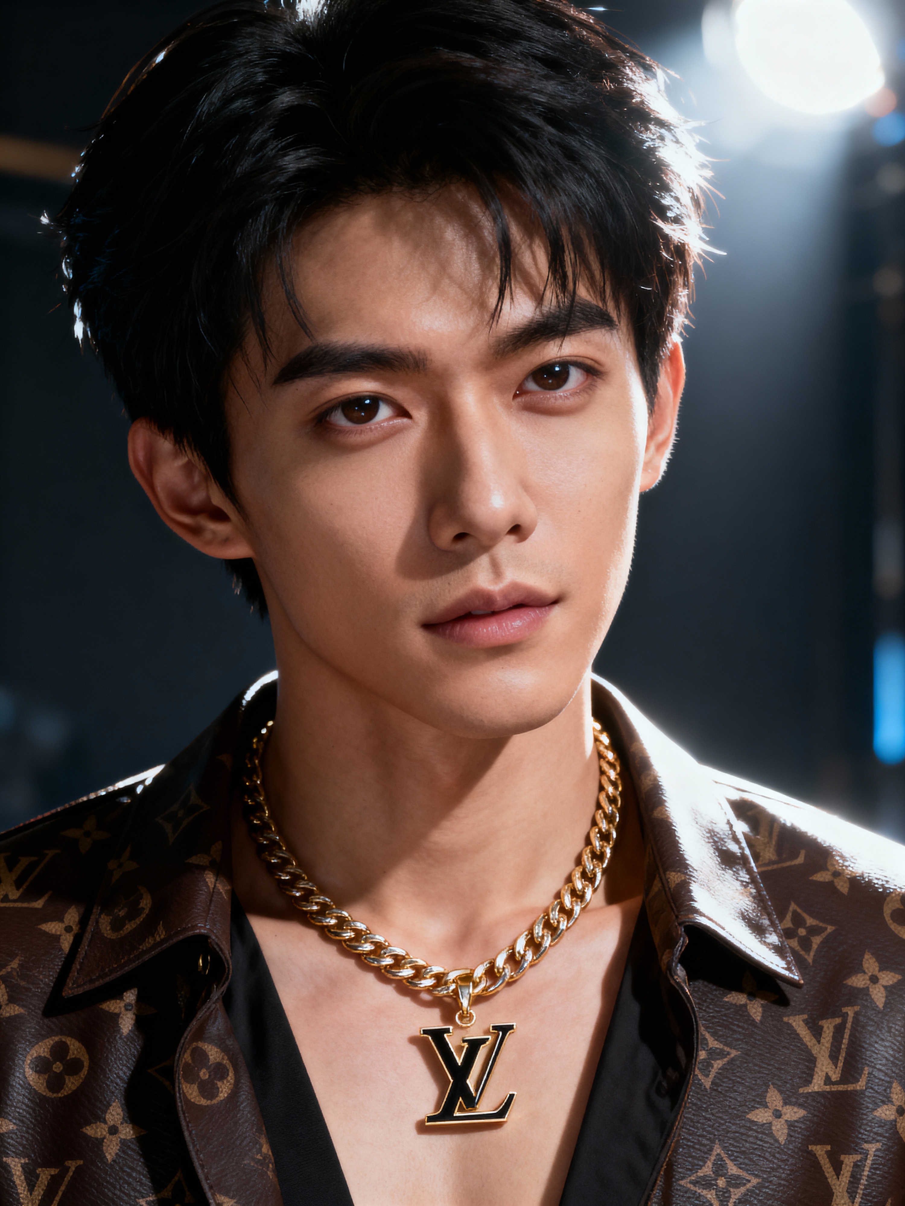 a male model as a beautiful fashion charming dreamlike model with lv jewelry, character art, art by artgerm lau and wlop and and ilya kuvshinov and john singer sargent, hyperdetailed, 8 k realistic, symmetrical, frostbite 3 engine, cryengine, dof, trending on artstation, digital art