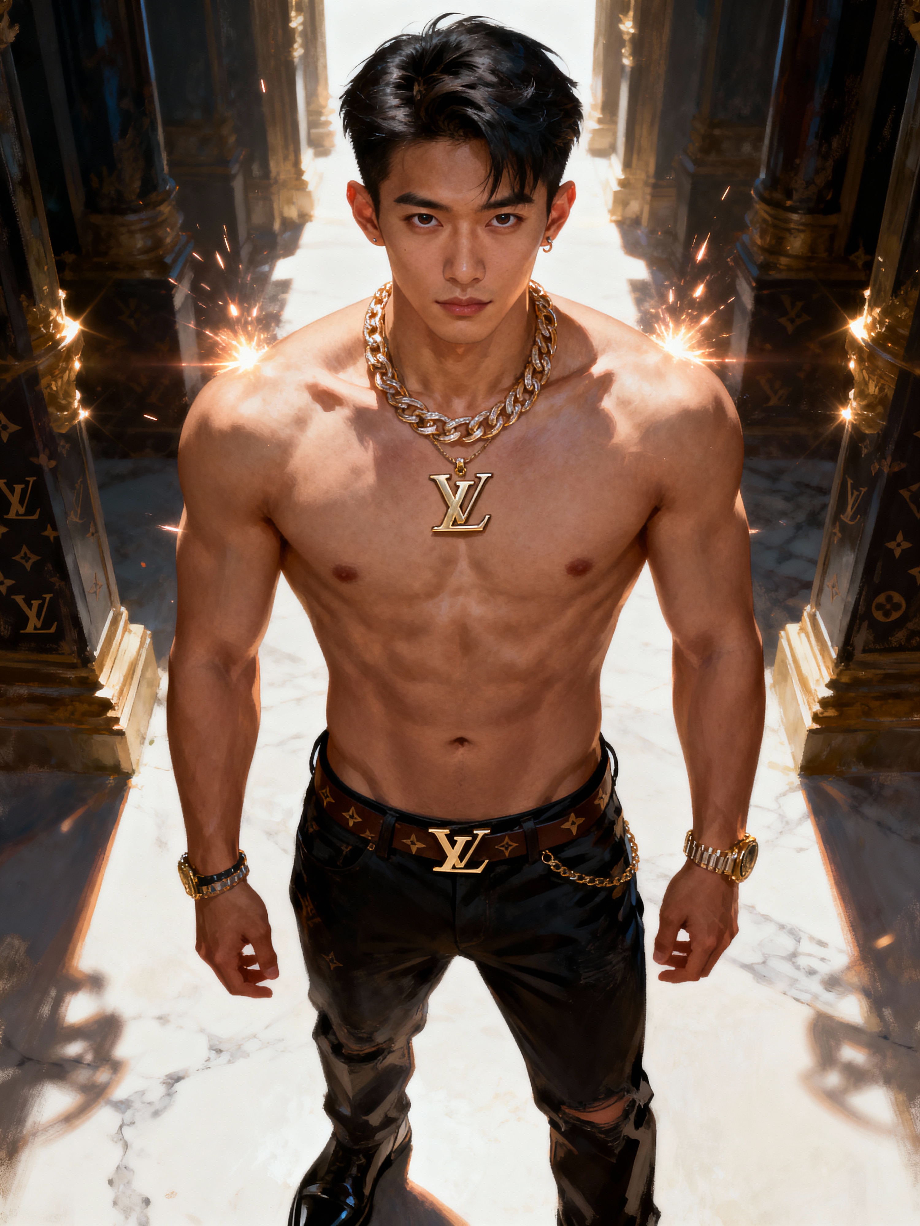 a male model as a beautiful fashion charming dreamlike model with lv jewelry, character art, art by artgerm lau and wlop and and ilya kuvshinov and john singer sargent, hyperdetailed, 8 k realistic, symmetrical, frostbite 3 engine, cryengine, dof, trending on artstation, digital art