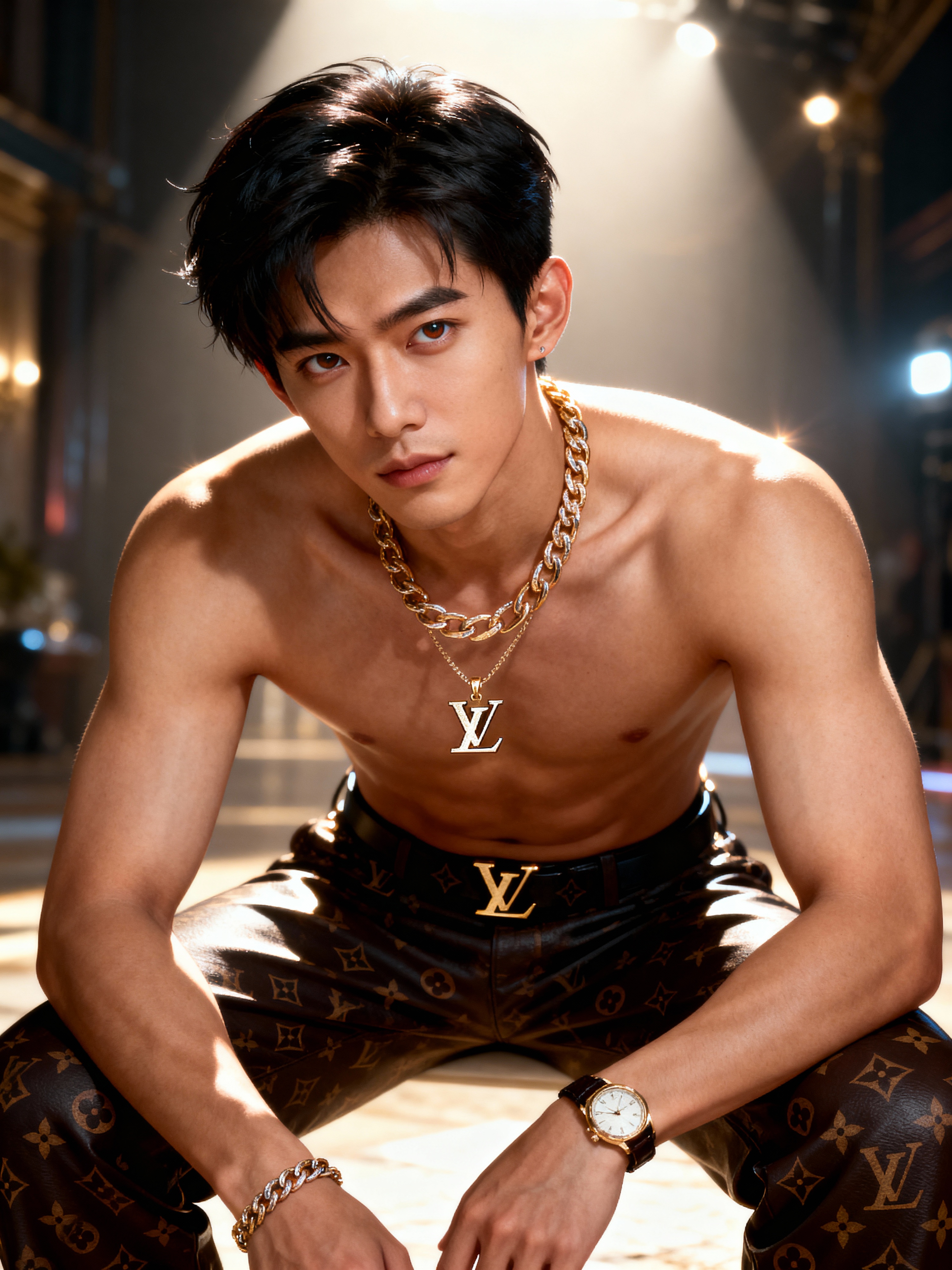 a male model as a beautiful fashion charming dreamlike model with lv jewelry, character art, art by artgerm lau and wlop and and ilya kuvshinov and john singer sargent, hyperdetailed, 8 k realistic, symmetrical, frostbite 3 engine, cryengine, dof, trending on artstation, digital art
