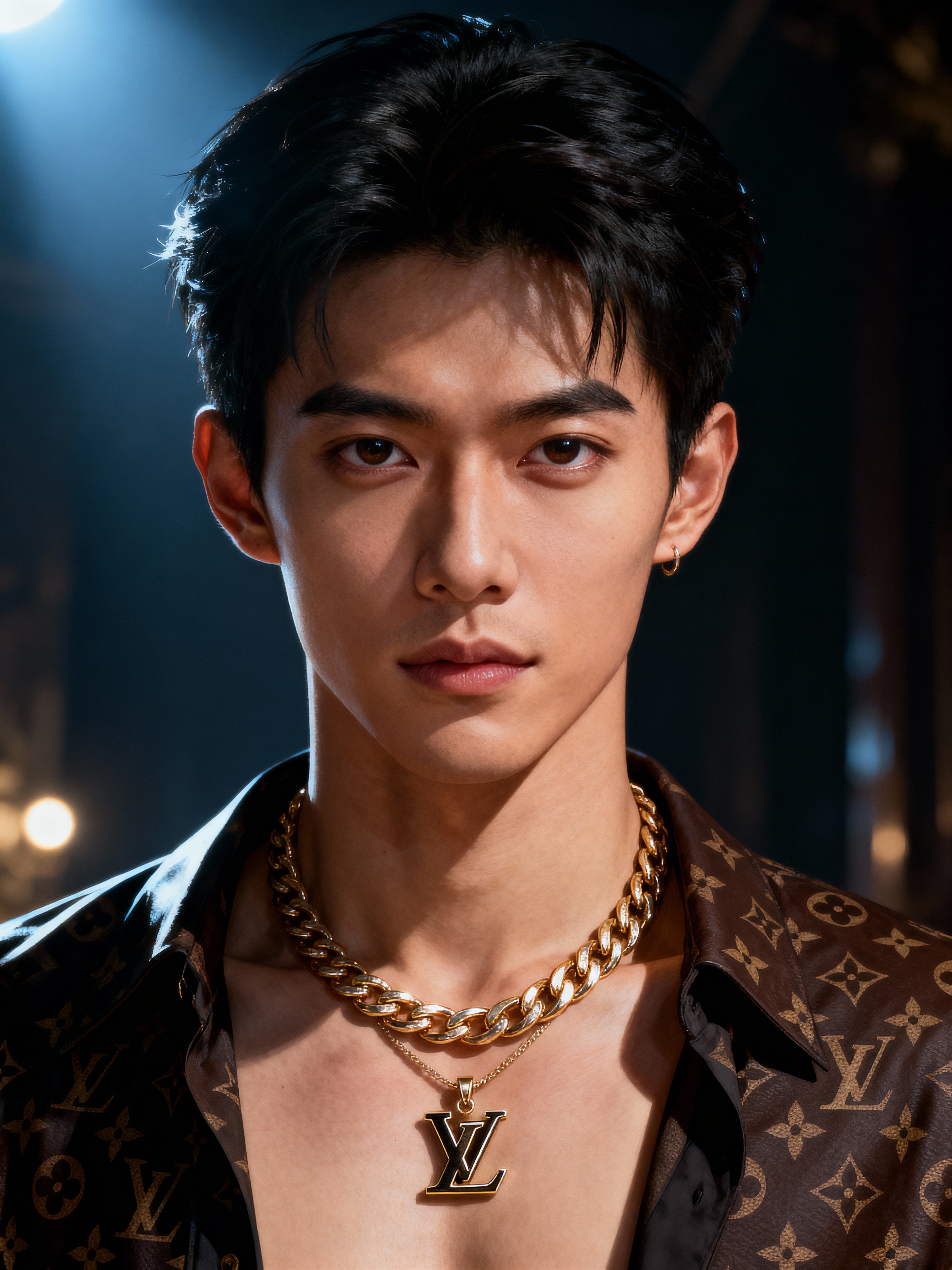 a male model as a beautiful fashion charming dreamlike model with lv jewelry, character art, art by artgerm lau and wlop and and ilya kuvshinov and john singer sargent, hyperdetailed, 8 k realistic, symmetrical, frostbite 3 engine, cryengine, dof, trending on artstation, digital art