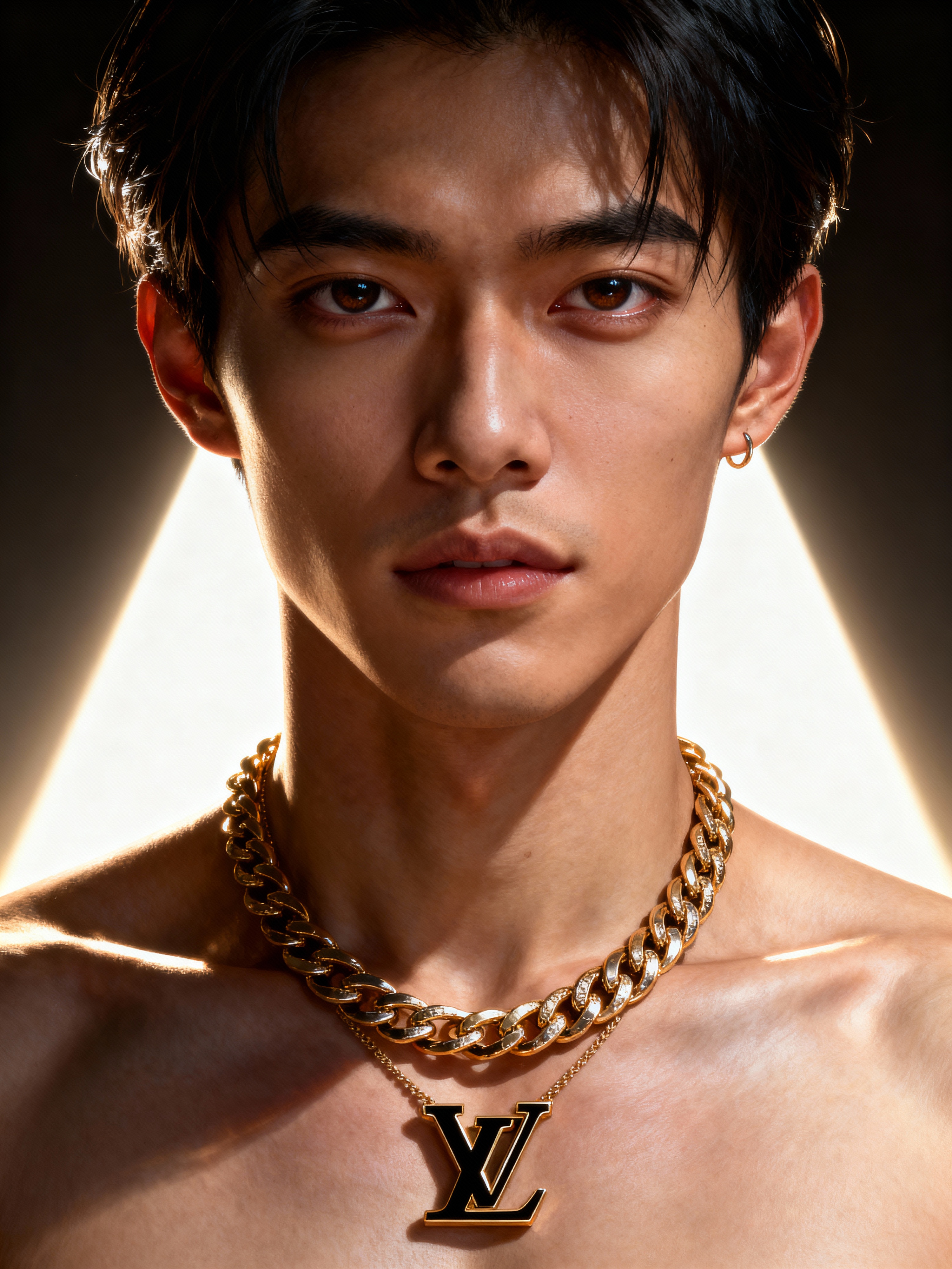 a male model as a beautiful fashion charming dreamlike model with lv jewelry, character art, art by artgerm lau and wlop and and ilya kuvshinov and john singer sargent, hyperdetailed, 8 k realistic, symmetrical, frostbite 3 engine, cryengine, dof, trending on artstation, digital art