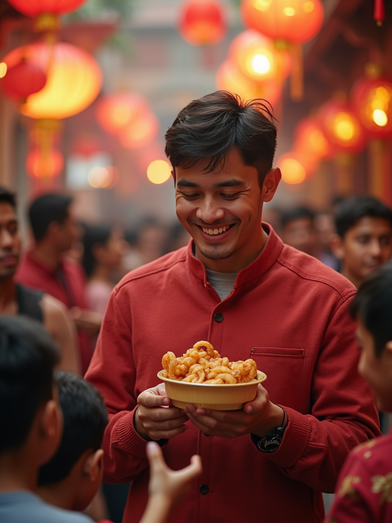 a model enjoying the Eid atmosphere, with hands giving Eidi to children, radiating happiness and generosity