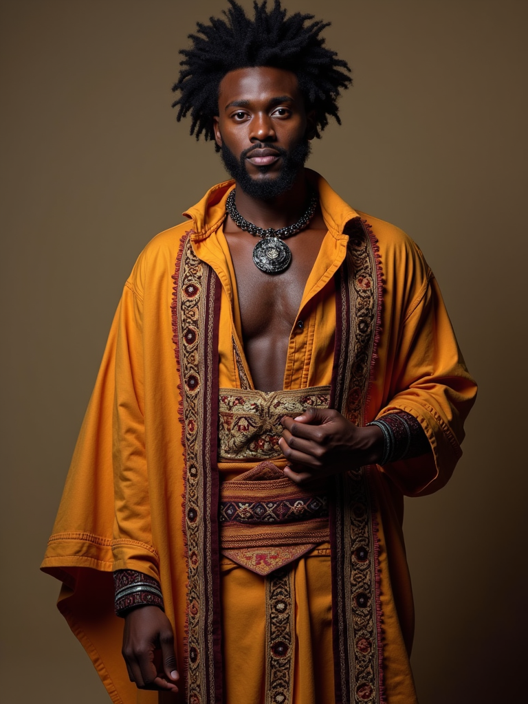 a model in a modern take on traditional clothes, embodying the balance of tradition and contemporary life during Hanukkah
