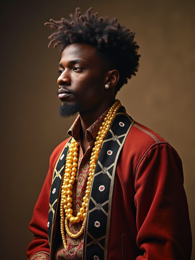 a model in a modern take on traditional clothes, embodying the balance of tradition and contemporary life during Hanukkah