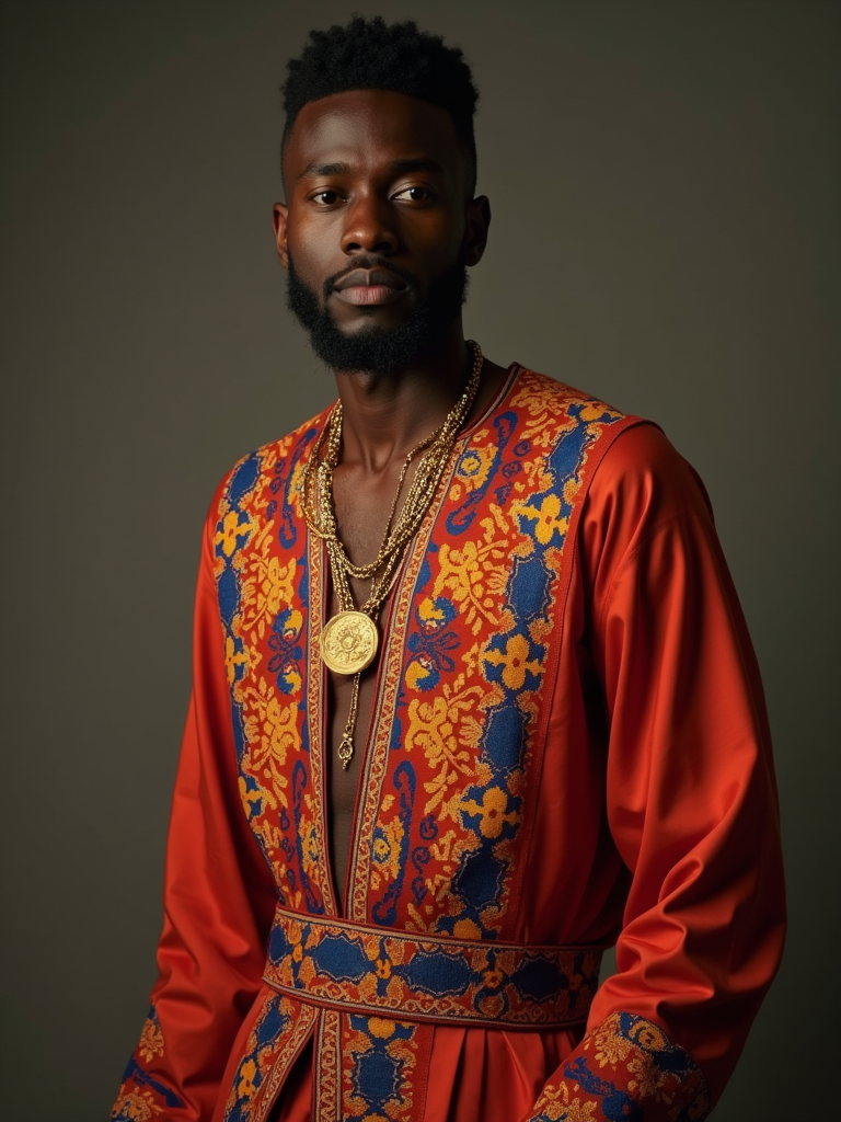 a model in a modern take on traditional clothes, embodying the balance of tradition and contemporary life during Hanukkah